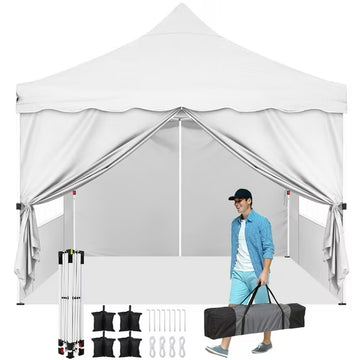 【STRONG AND STABLE CONSTRUCTION】The 10x20 canopy with sidewalls is made of powder coated steel tubing...