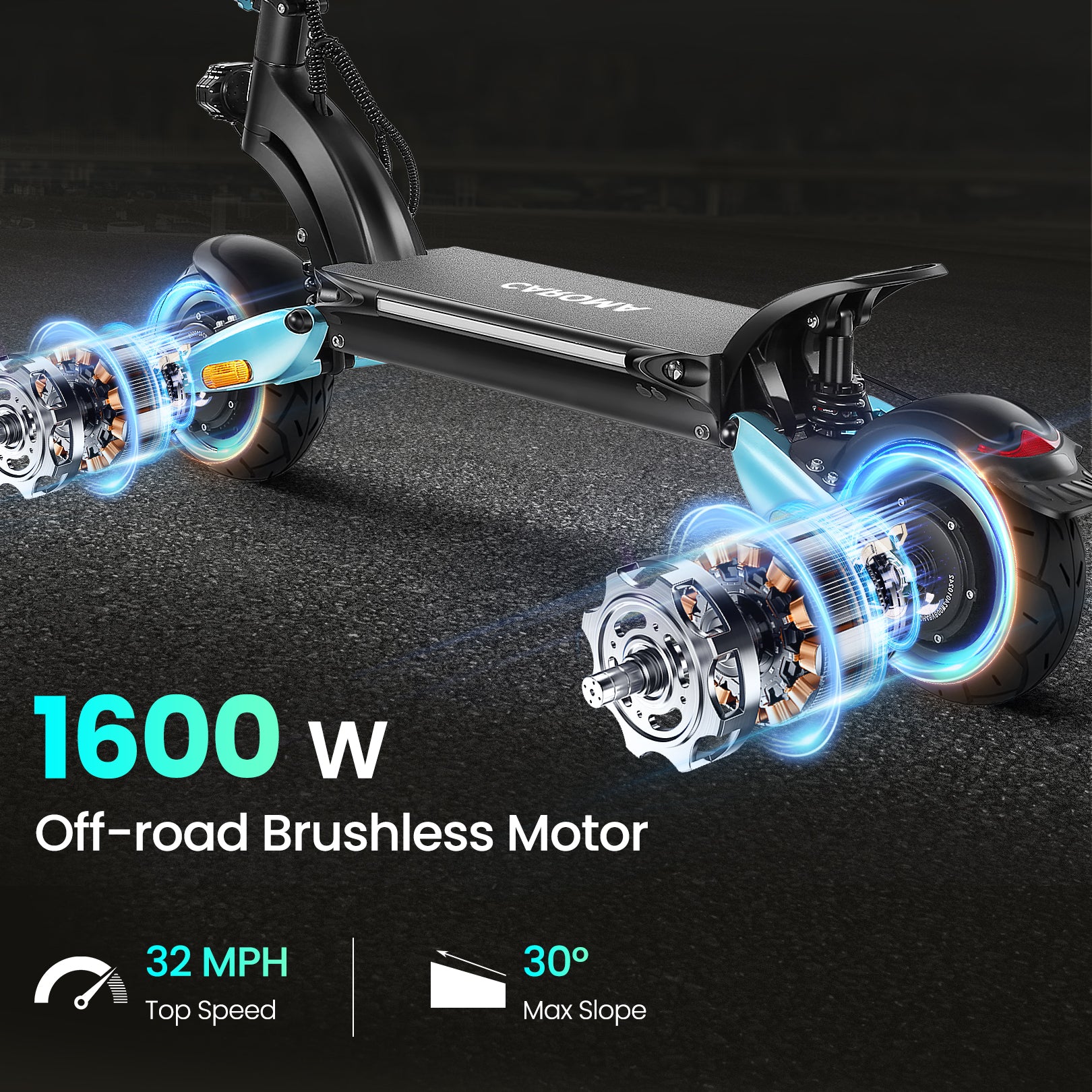 【Unparalleled Performance】- Caroma Lightning Electric Scooter for Adults is equipped with 800W dual motor (peak 1300W*2) and an impressive top speed of 36 MPH. 1600W motor makes it easier for riders to navigate the city streets, effortlessly overtakes traffic, and conquers challenging terrains and 30° slope. Experience the thrill of rapid, reliable acceleration with this remarkable scooter.