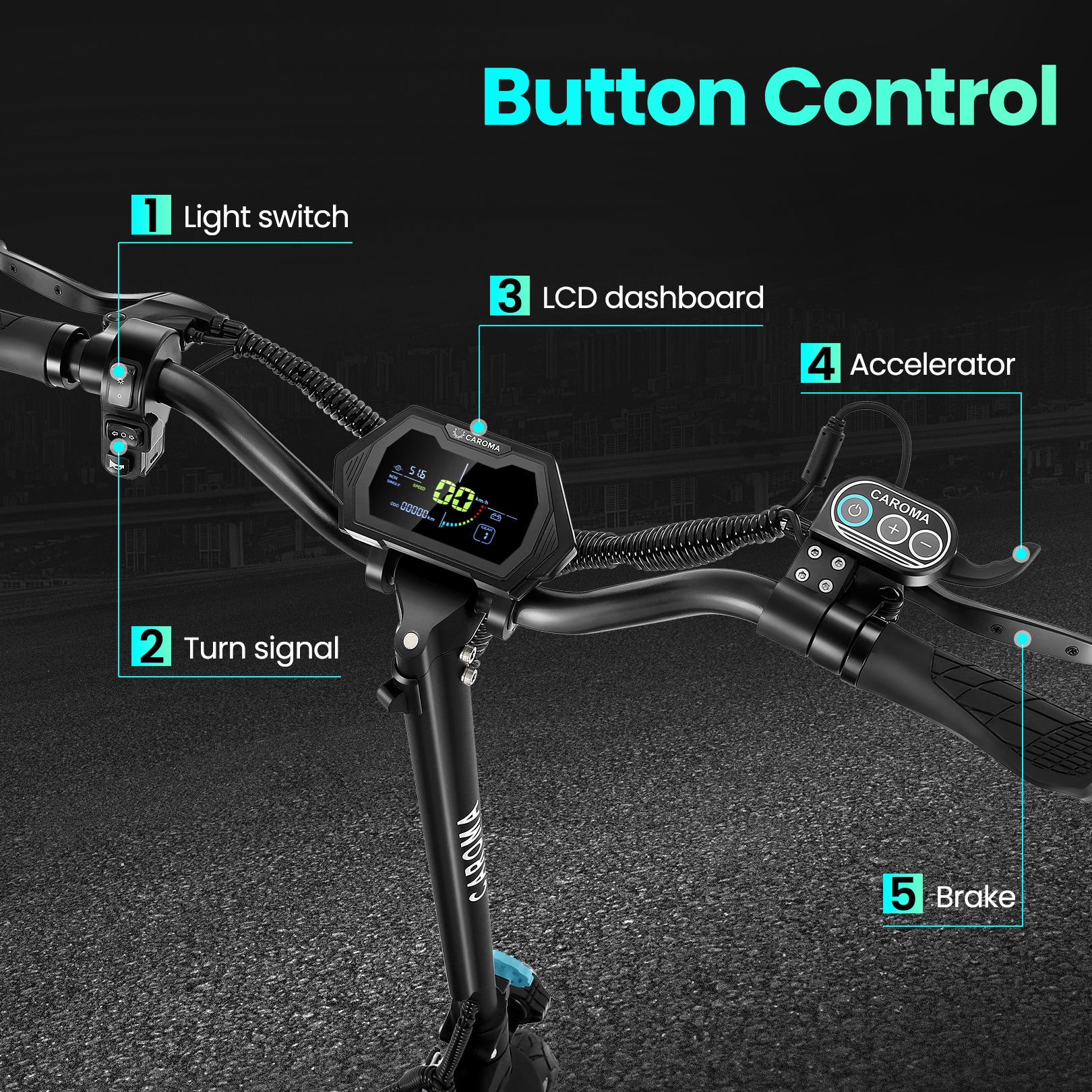 The Caroma C2 is our new Off Road e-scooter. This electric bike for adults and Teens ages 16 and up is capable of speeds up to 36 MPH and has a 37-mile range on a full charge. It aims to bring you and your companions a pleasant wilderness adventure, and daily commuting is also cool.