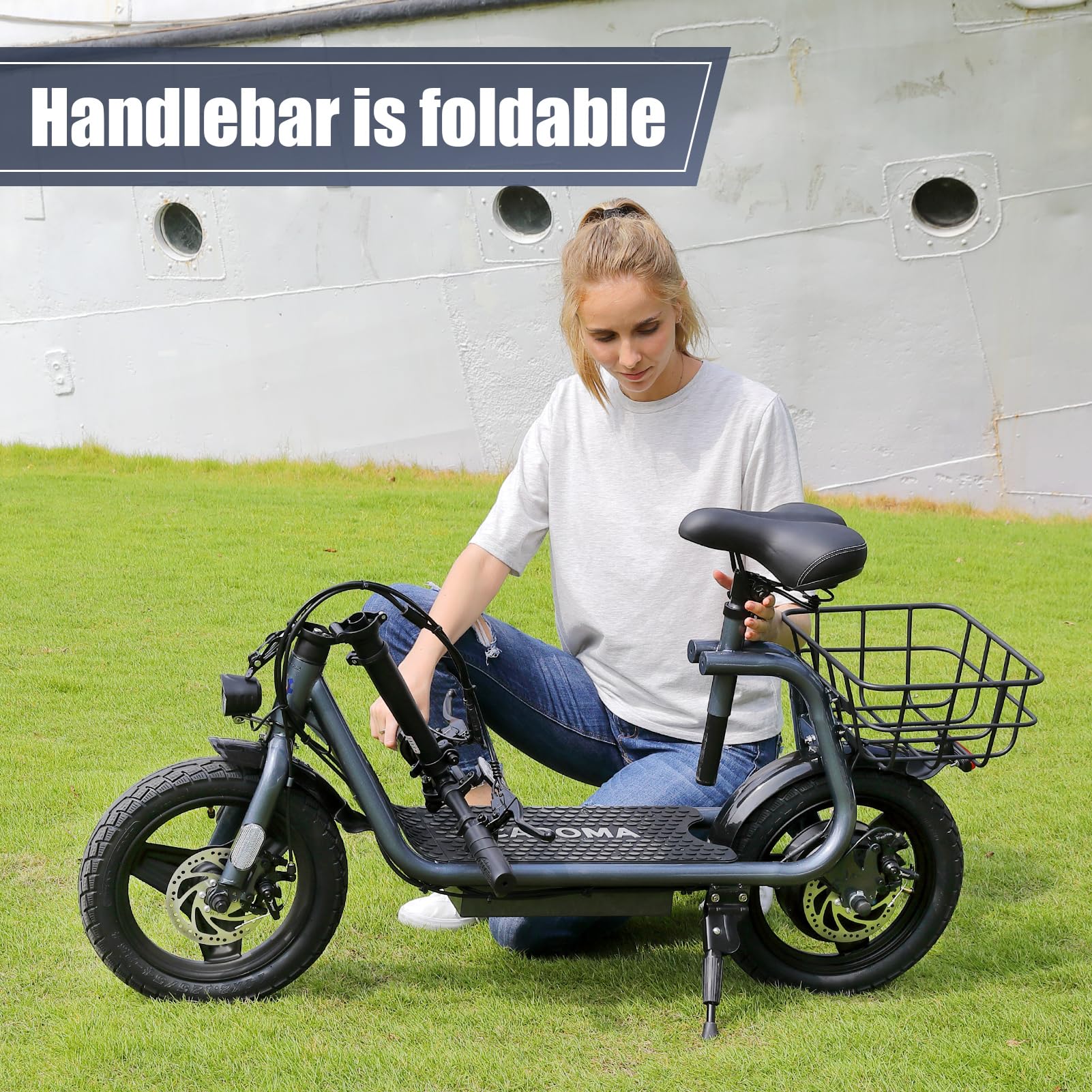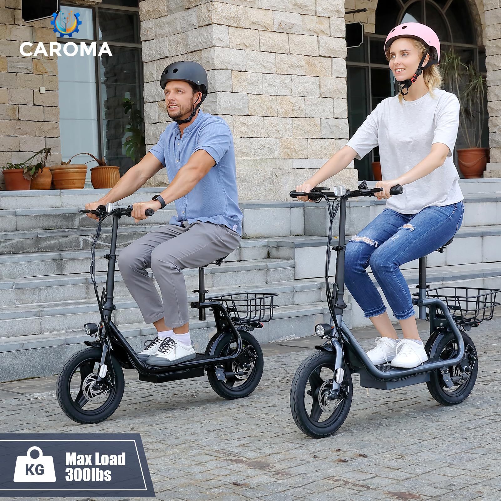 Caroma Electric Scooters, Foldable Adult Shock Absorbing Electric Bike for Commuting, 14" Tires Electric Scooter with Seat for Adults, Peak 819W Motor Up to 20MPH/25 Miles