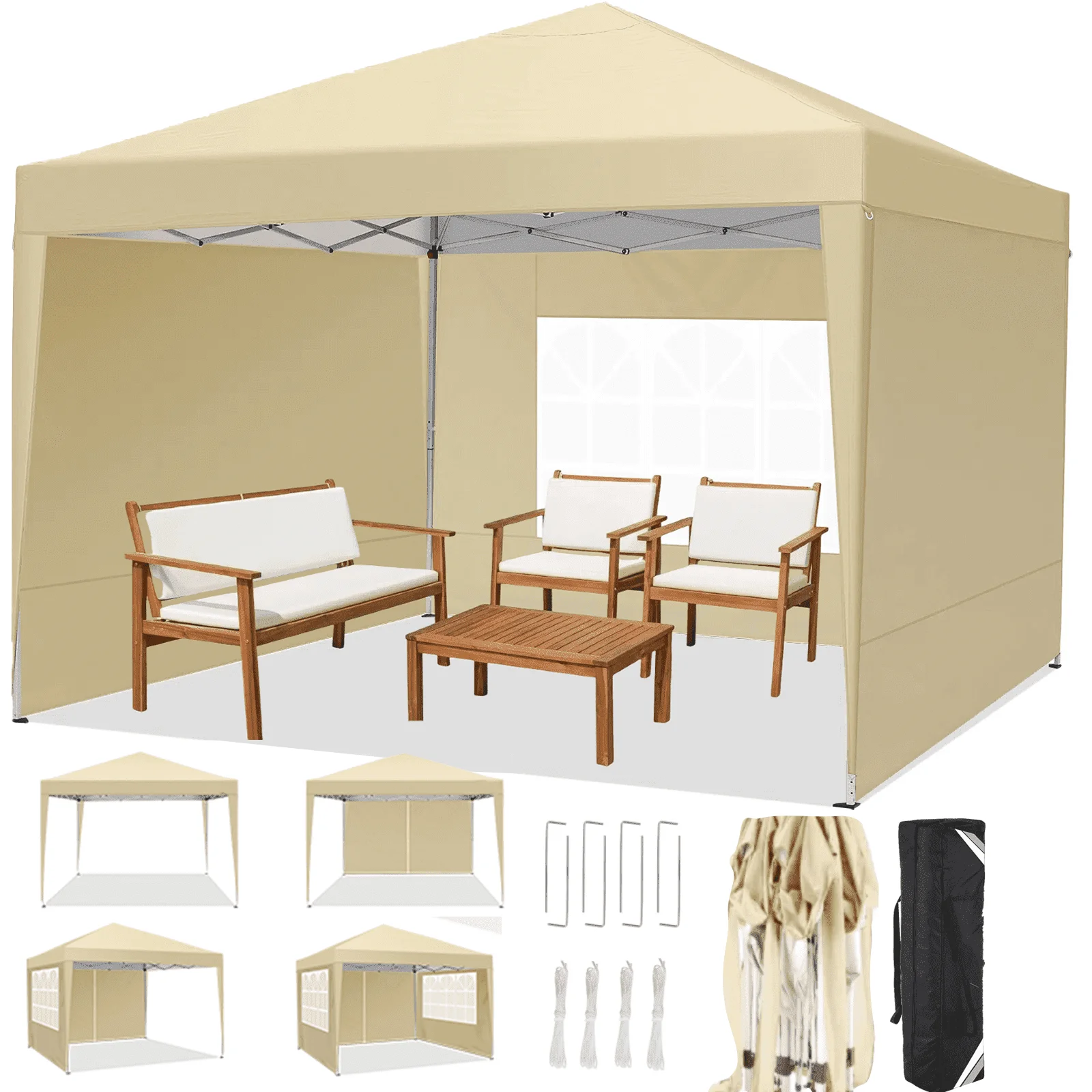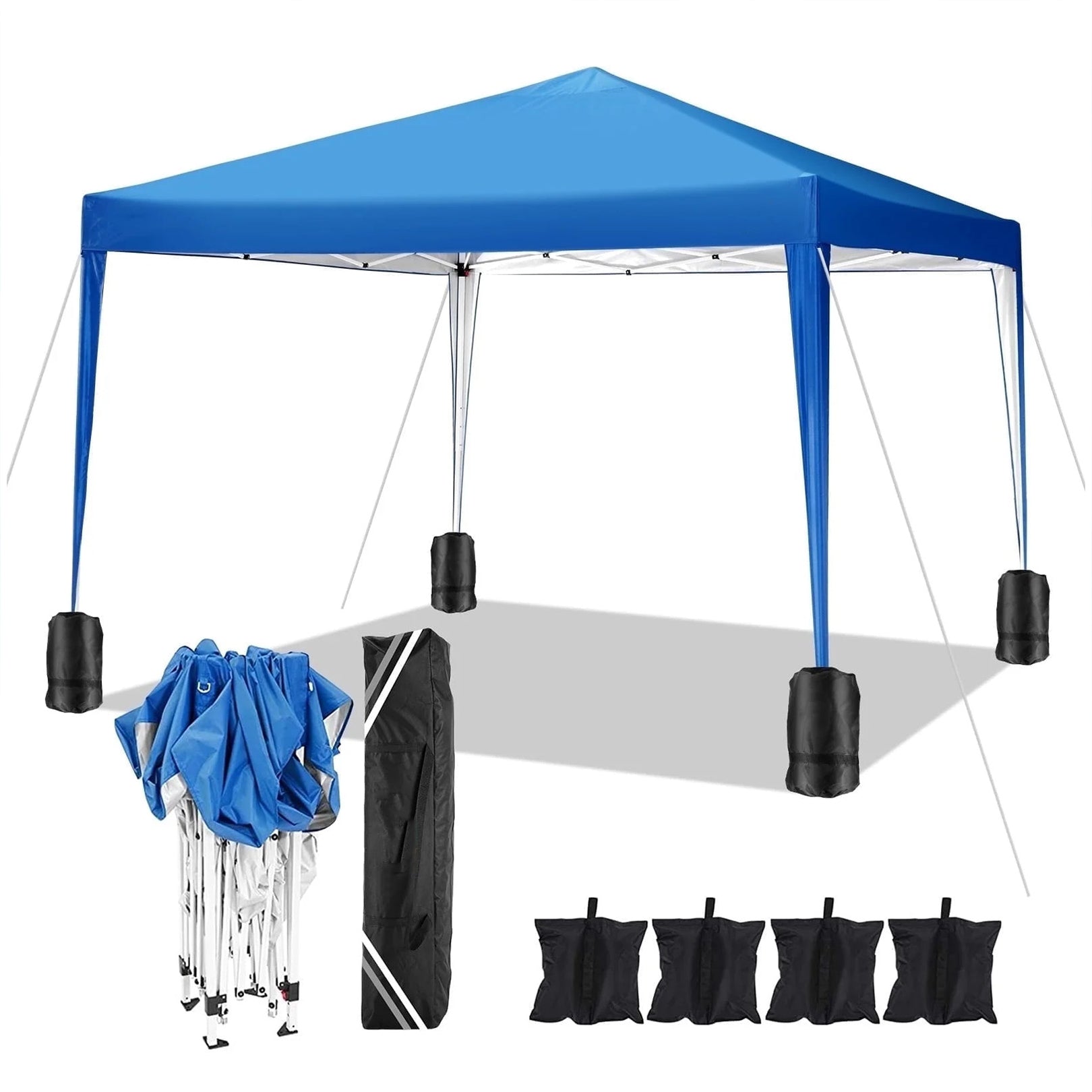- ãComplete accessoriesã10x10ft Pop Up Canopy Heavy Duty Frame + 10x10ft Canopy Top Cover + 4xSandbags + 600D Oxford Fabric Bag + 8xStakes + 4xRopes + Manual.Includes all necessary accessories, no need to purchase additional items, saving you time and effort, so you can immediately enjoy the convenience and functionality of the canopy.