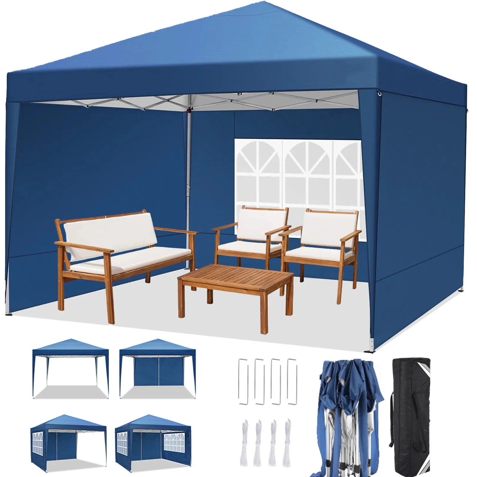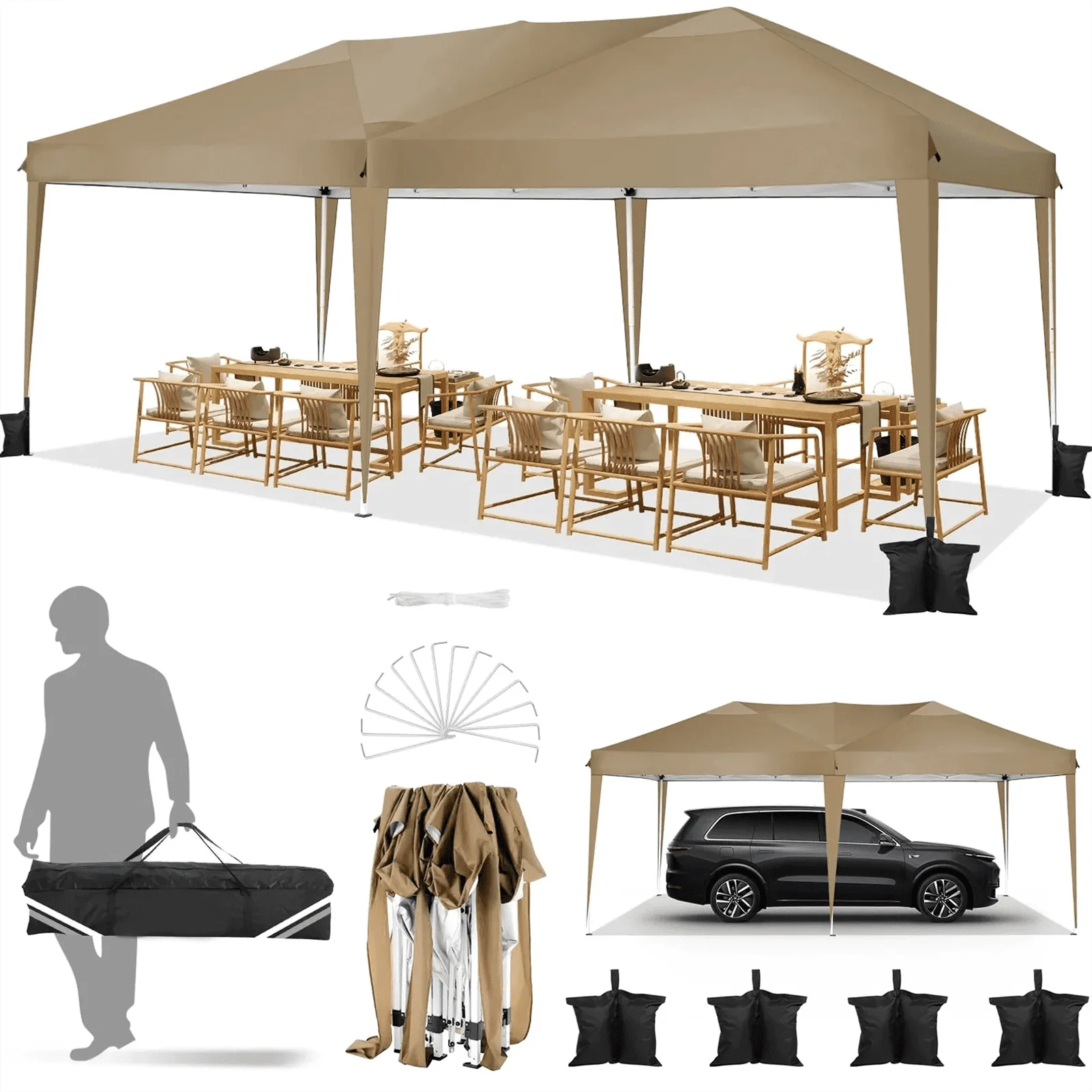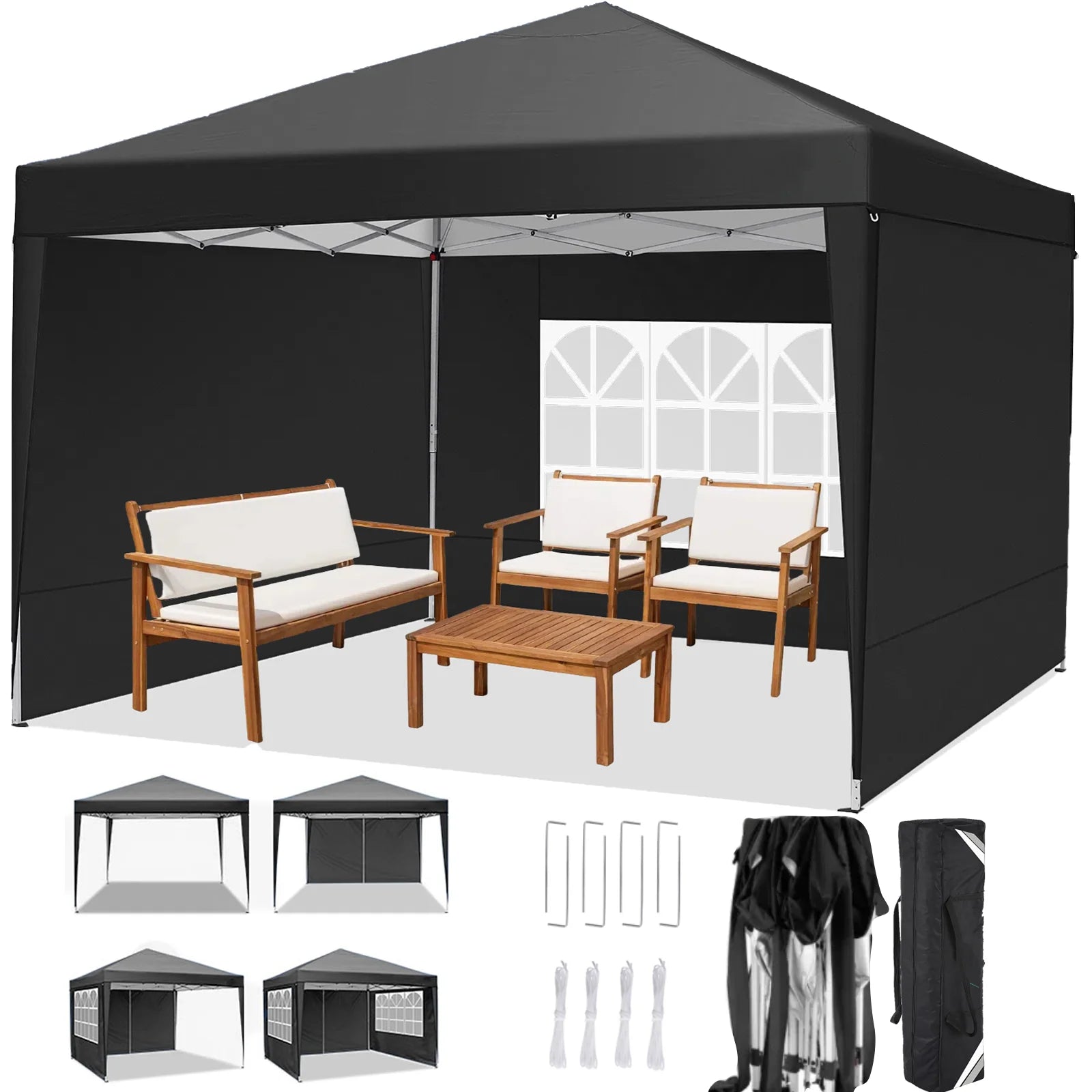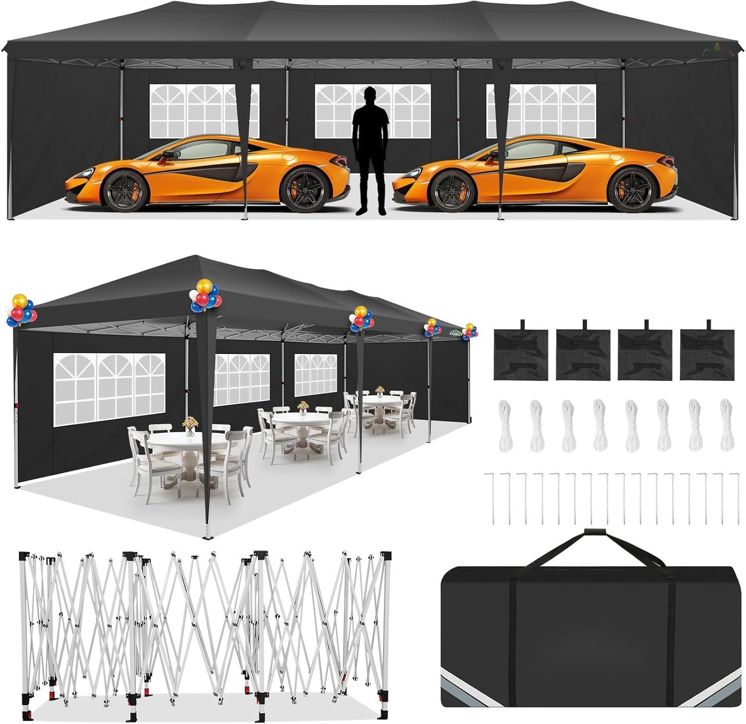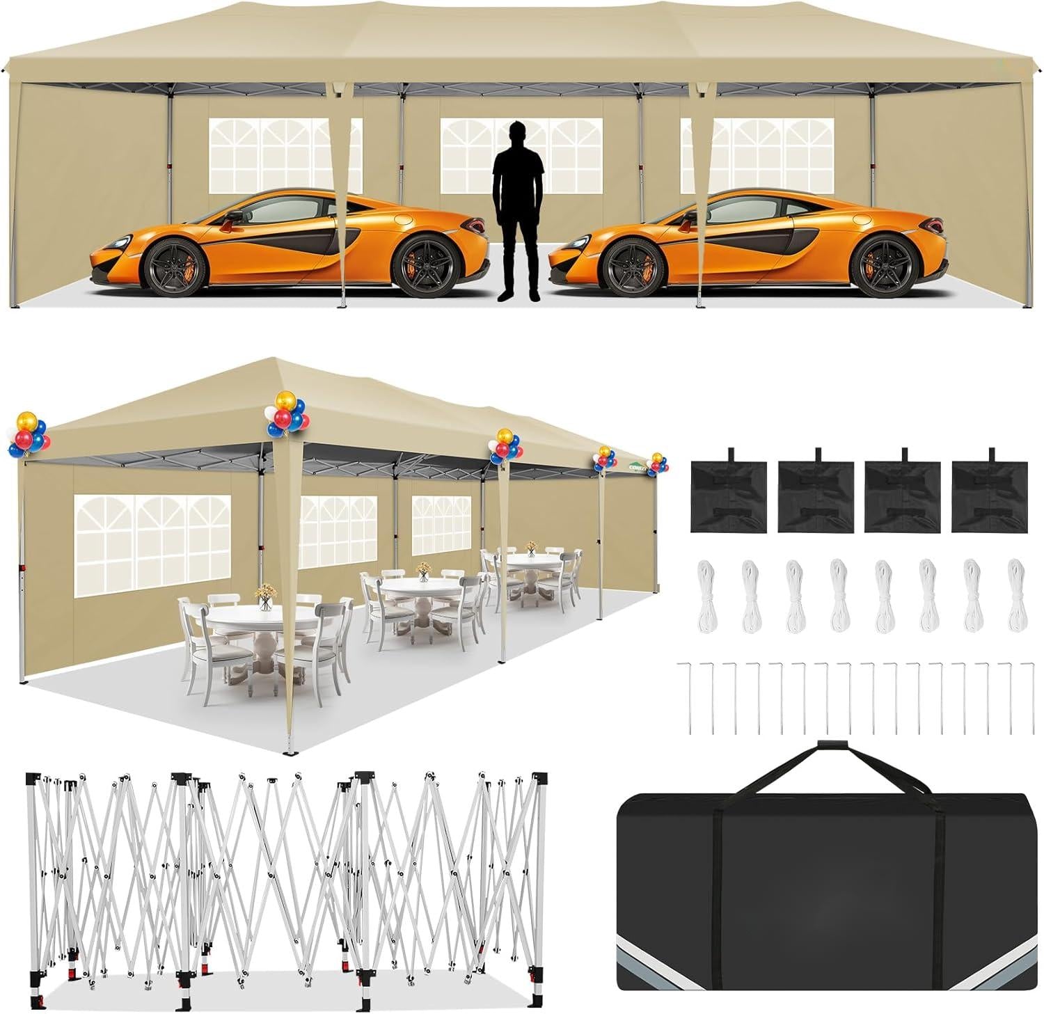 - ãMultifunctional Useã10x10 portable commercial camping canopy gazebo tent is suitable for outdoor events, carport, parties, wedding, picnic, BBQ, and other event uses. Just put party tent into the carry bag and you can quickly set it up anytime, anywhere, whether for leisure or business purposes.