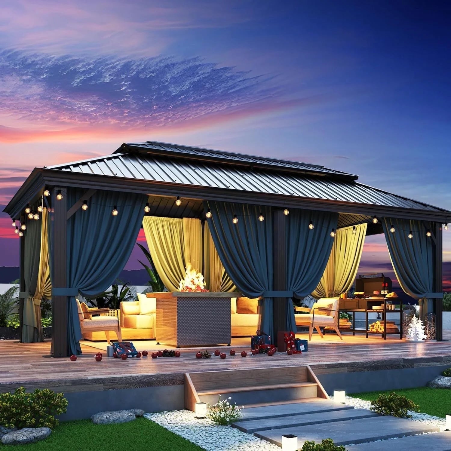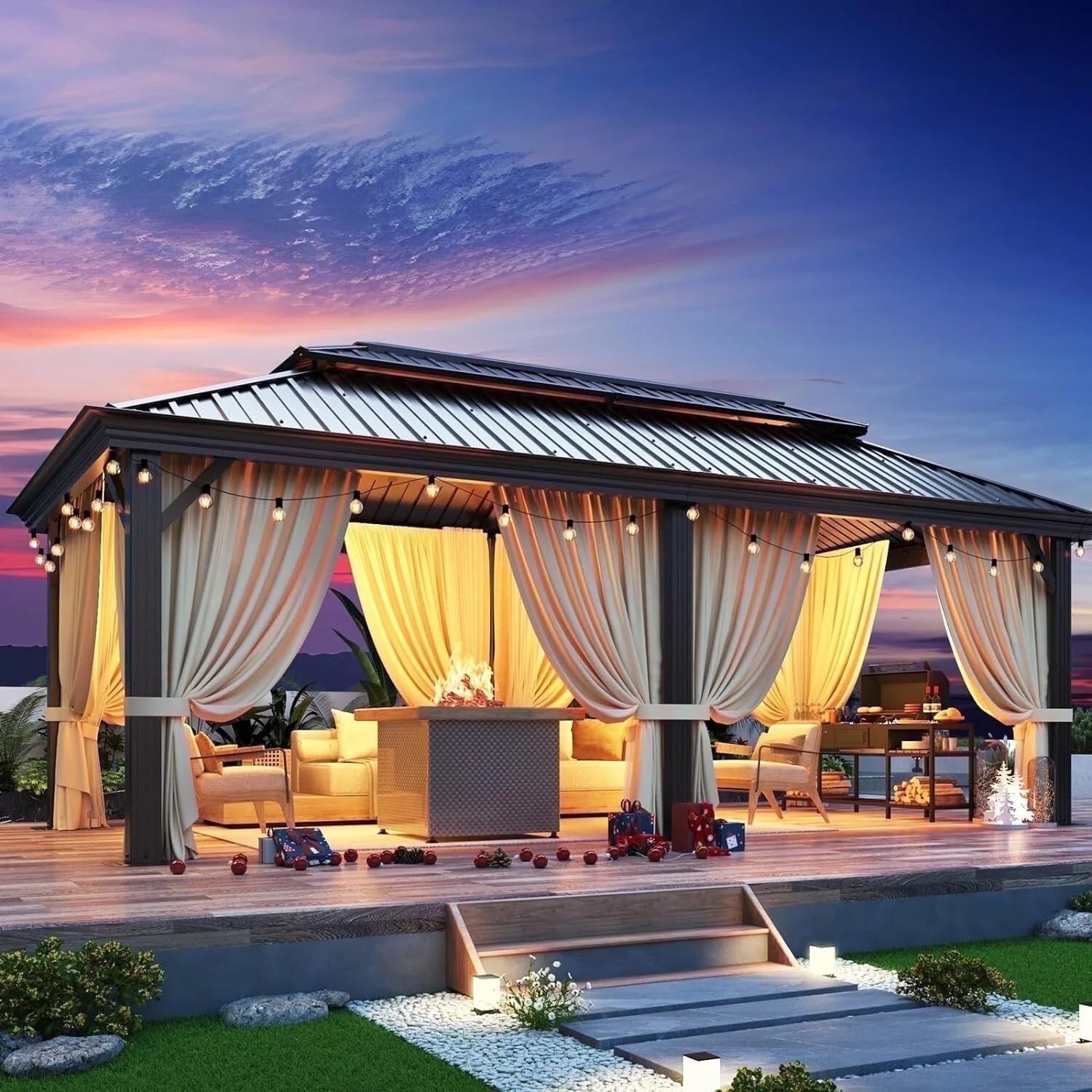 Our COBIZI Hardtop Gazebos Size types includes:10x12FT, 10x15FT(NEW&UPGRADED), 12x20FT