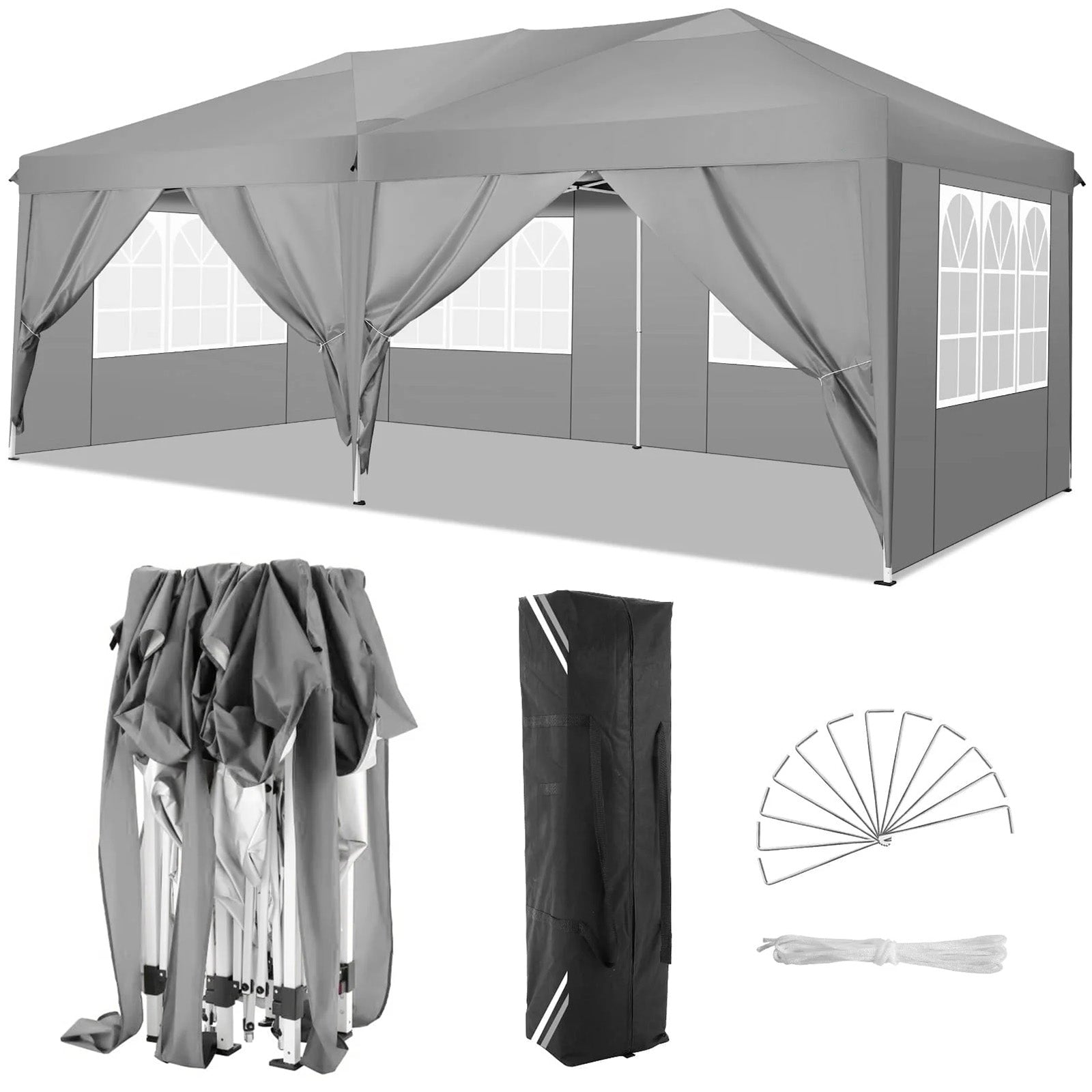 COBIZI 10x10 Pop up Canopy with Sidewalls Waterproof Outdoor Canopy Gazebo Anti-UV Instant Foldable Canopy Tent for Party with Carry Bag,Khaki