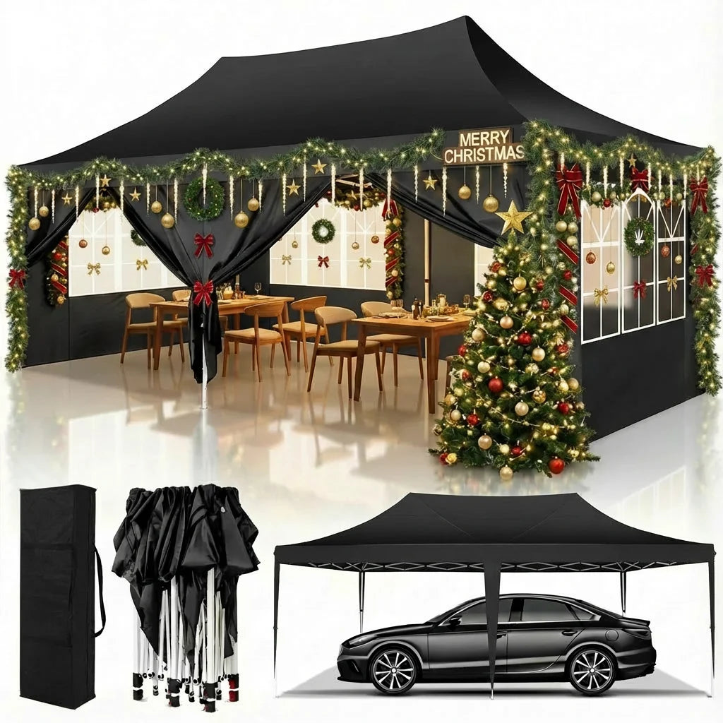 This extra‑large 10x20 FT canopy with sidewalls and a raised roof comfortably hosts 10–15 people for dining or gatherings. Four church‑style window panels plus two zippered sidewalls offer easy entry and clear views, making it a reliable outdoor shelter for farmers markets, backyards, patios, festivals, beaches, sports events, family parties, and BBQs.
