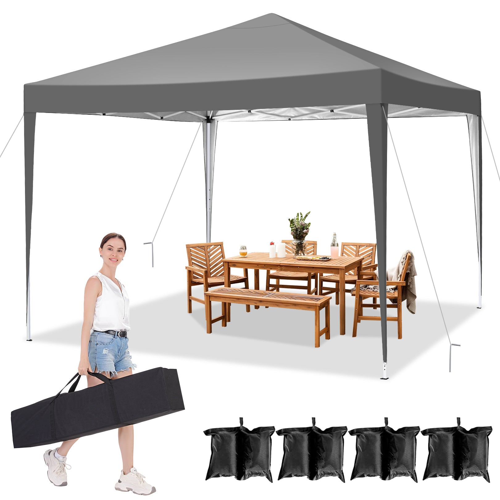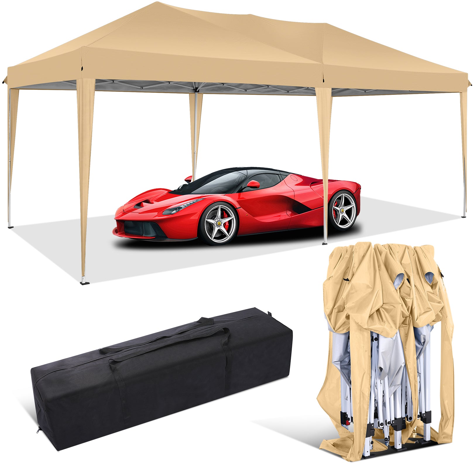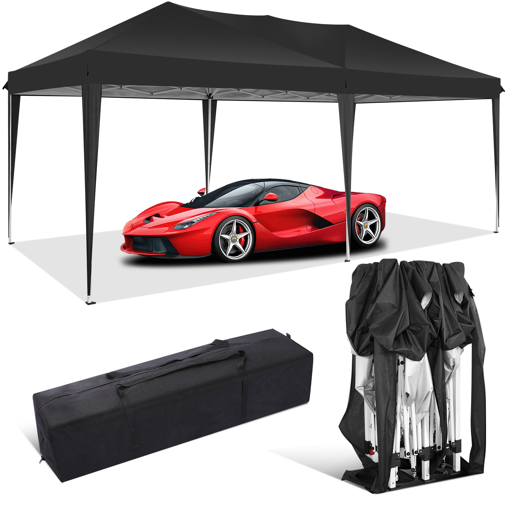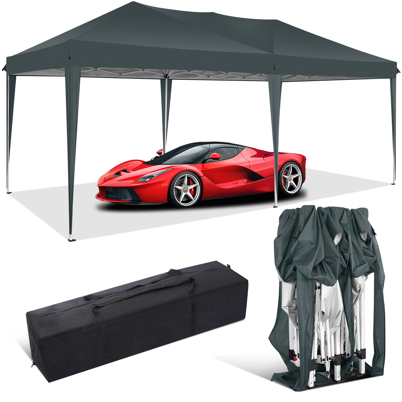 The perfect Canopy solution for all your outdoor&patio needs! With pop up canopy one-step steel frame, this 10x30 pop up canopy sets up in no time. Stay dry and protected with its waterproof design and UPF 50+ UV protection. Customize your space for any occasion with 3 removable sidewalls. Whether it's backyard gatherings, parties, sports events, camping, or barbecues, this 10x30 canopy gazebo has you covered. The rust-proof frame ensures stability, while stakes and ropes provide added support. Easily transport and store with the included carry bag. Don't miss out on endless outdoor fun - get yours today!