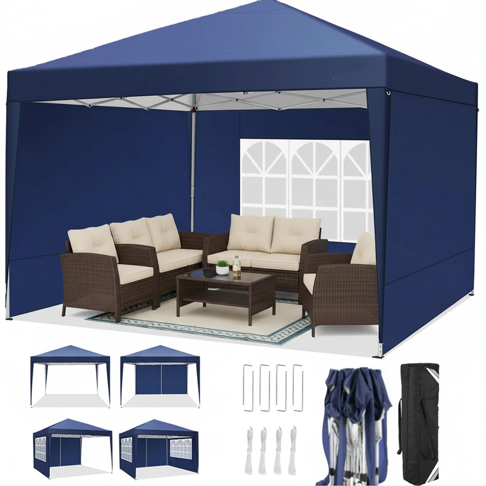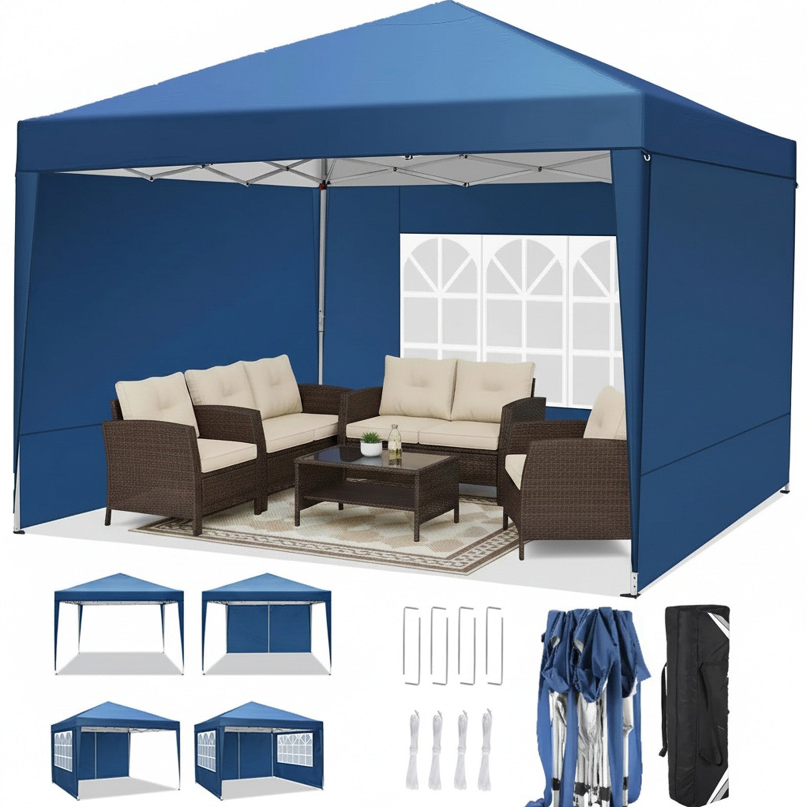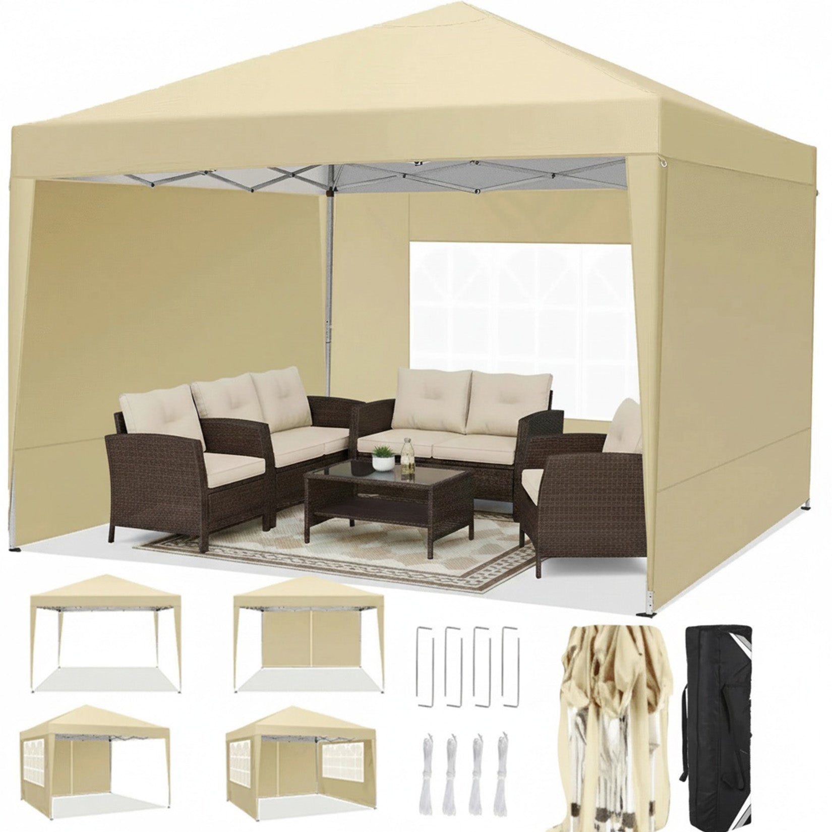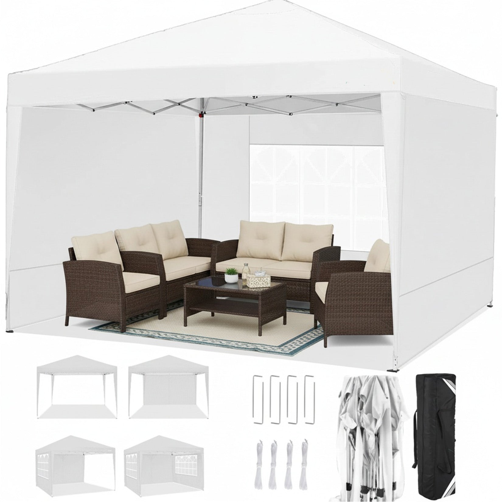 - 5 x removable canopy sidewalls