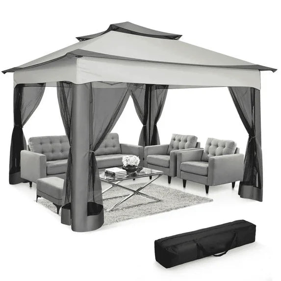 COBIZI 12'x12' Pop-up Gazebo Patio Gazebo Outdoor Gazebo Canopy with Mosquito Netting Patio Tent Backyard Canopy with 2-Tiered Vented Top 3 Adjustable Height and 144 Square Ft of Shade, Dark Gray