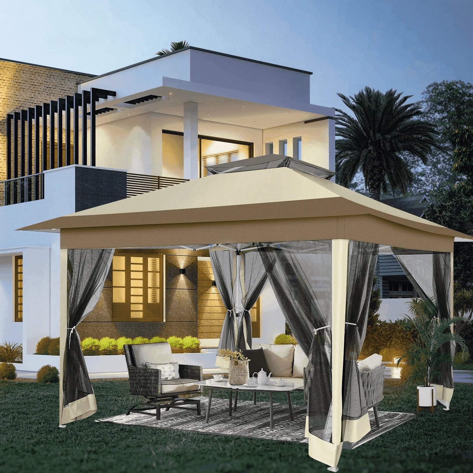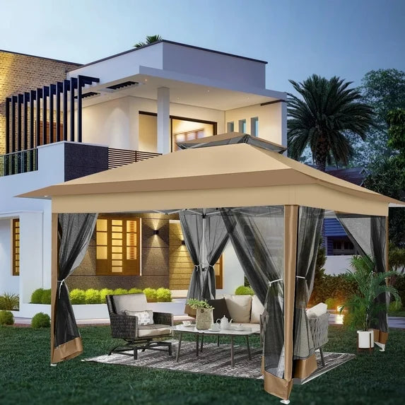 The Cobizi 11X11 pop-up patio gazebo is elegant, weighing 38 pounds, providing a cool place of 121 square meters, which can accommodate about 10 people. At the same time, it provides better stability under wind -shaking conditions. The surface is made of waterproof and ultraviolet -proof 420D Oxford fabric materials. It is also equipped with mesh -like side board, which can not only block the nourishment, but also provide ventilation and more privacy. Whether it is rainy, it is very suitable for you to enjoy outdoors!