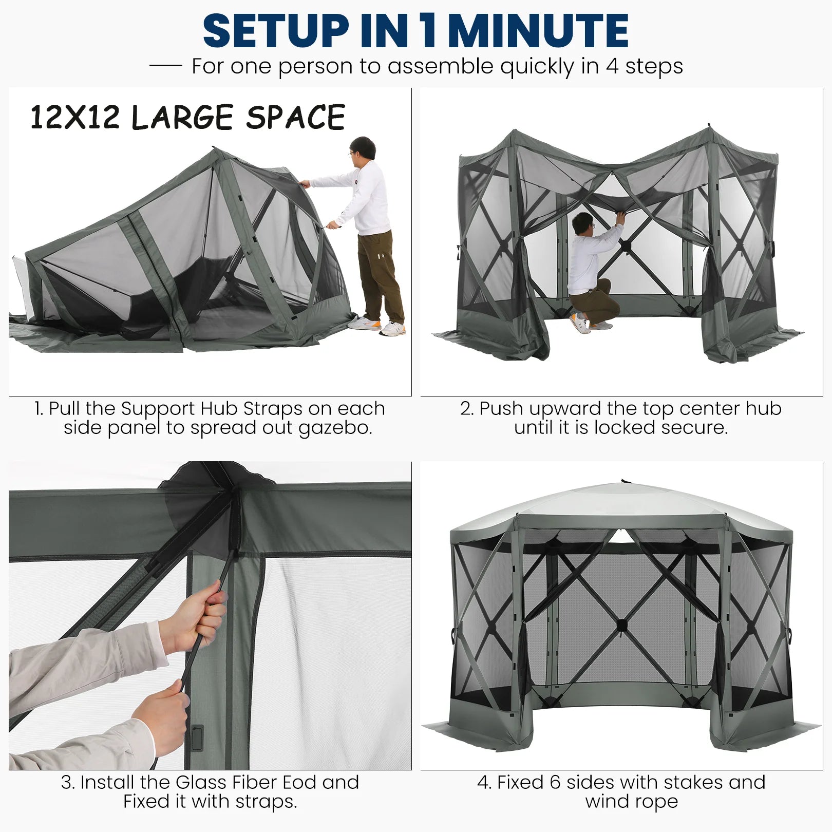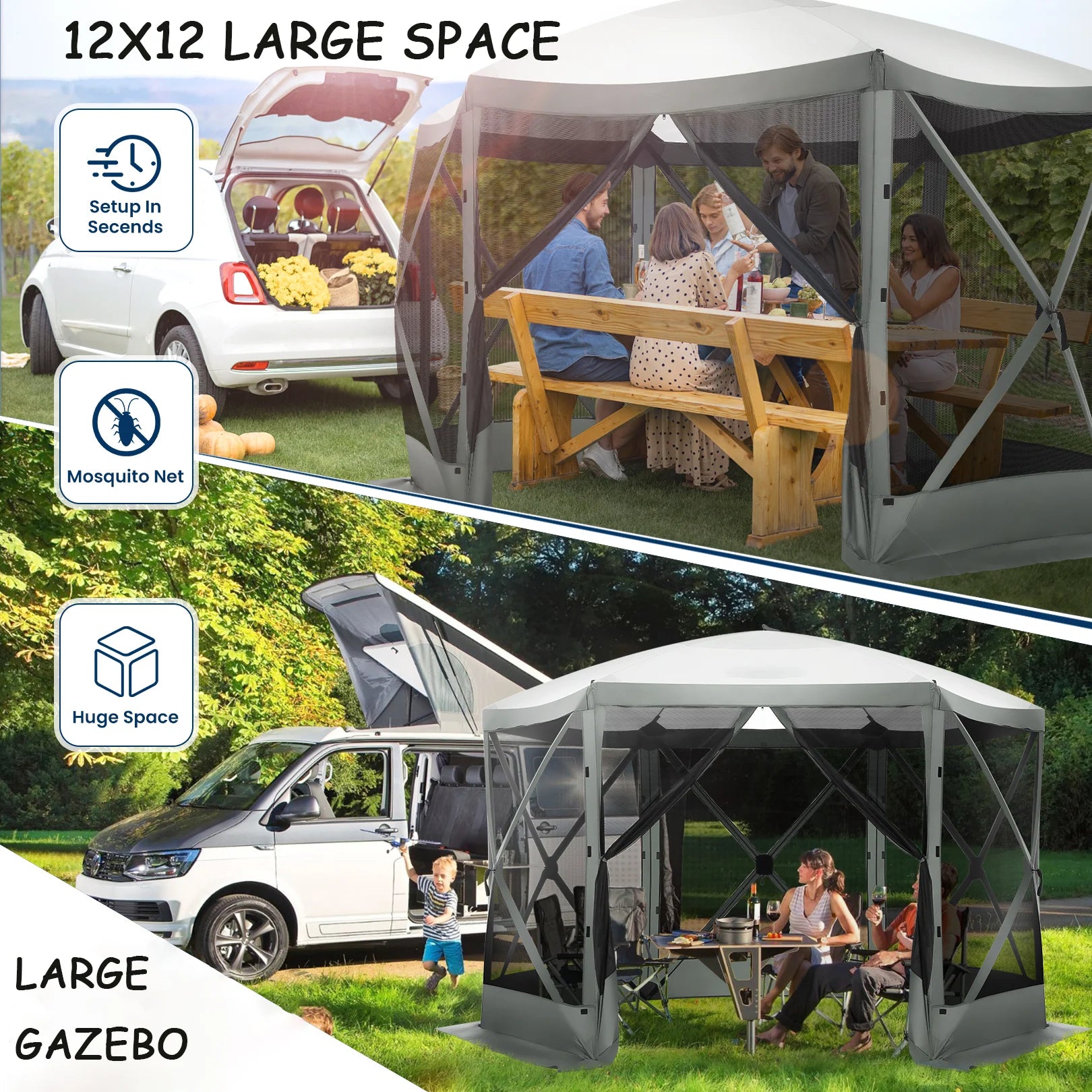 【Huge Space & Ventilated】Room for up to 8-10 people - measures 90.6" high and 140" hub-to-hub. Huge interior space for patio furniture and BBQ grills inside. Provides ample space to meet and gather in the wild.Best Space in garden, backyard or during outdoor travels for party, afternoon tea time or picnic.