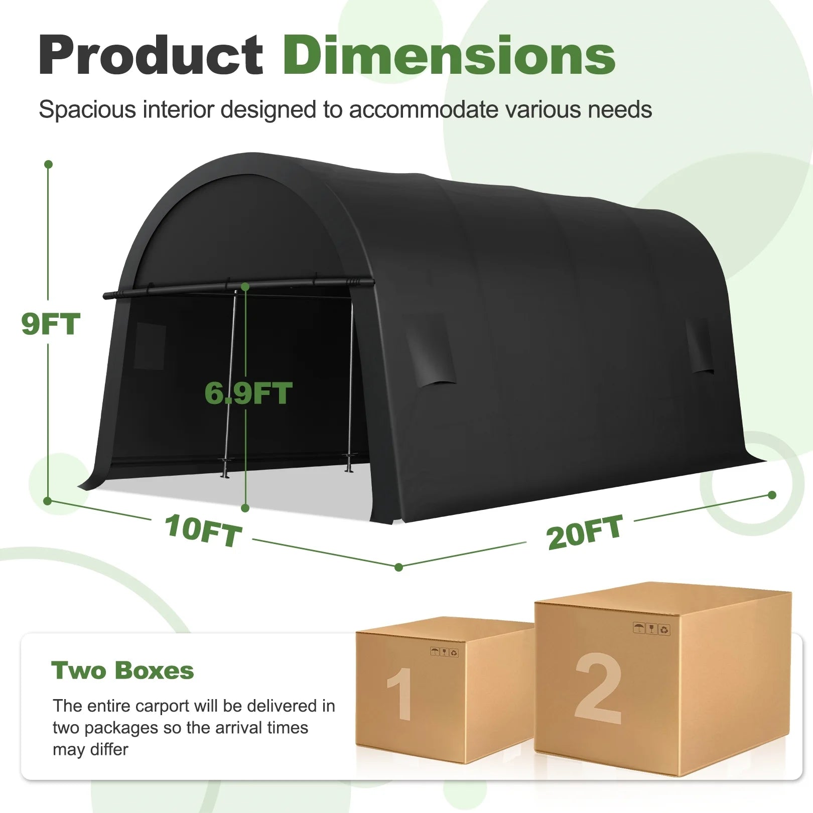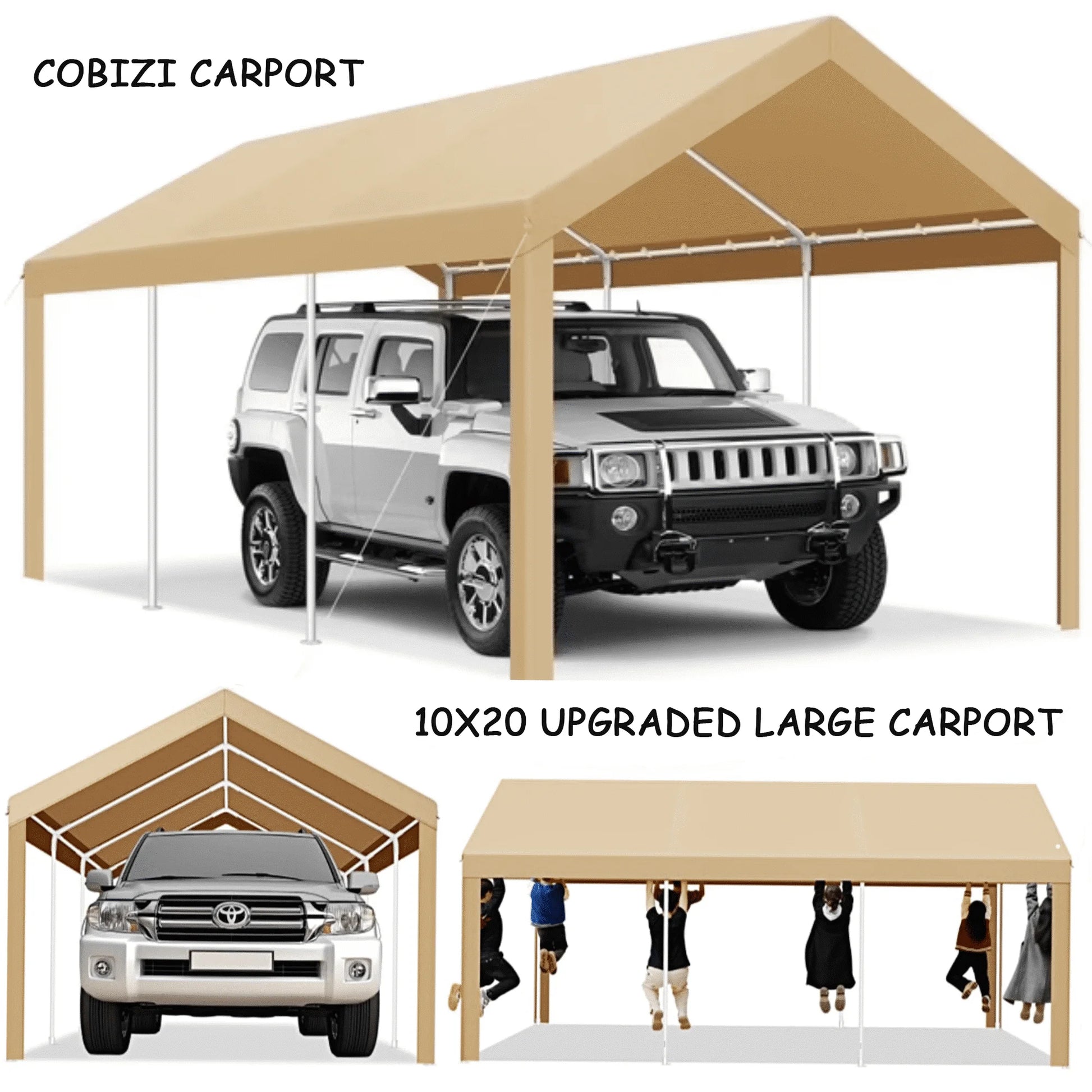Experience superior protection with the COBIZI Heavy Duty Carport. Constructed from galvanized, rust-proof steel, this carport features a robust frame with 8-10 hot-dip galvanized steel pipes and a secure ratchet fixing method for exceptional stability. The double zipper roll-up door offers easy access, excellent sealing, and high durability. Its round roof design and 180g PE waterproof tarpaulin effectively reduce wind resistance and ensure quick water drainage. Equipped with elastic balls, ground nails, and wind ropes, this carport is built to endure all seasons. Ideal for vehicle protection, outdoor activities, and storage, it’s versatile and practical. Easy to set up with included instructions, COBIZI provides reliable, all-weather protection for your vehicle.