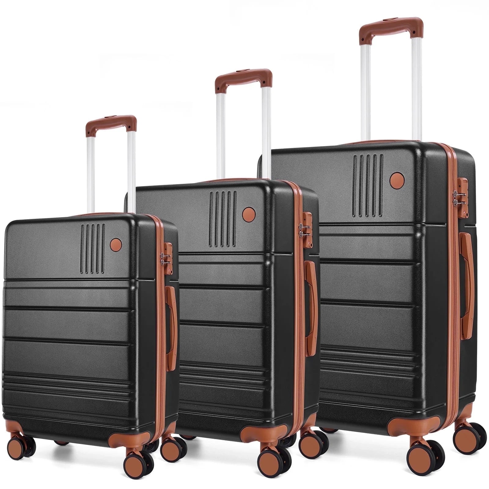 COBIZI Luggage Sets 3 Piece, ABS+PC Hard Shell Suitcases with Wheels, TSA Aproved Lock and Convient Side Hook, Travel Suit Case Set for Men and Women, Black