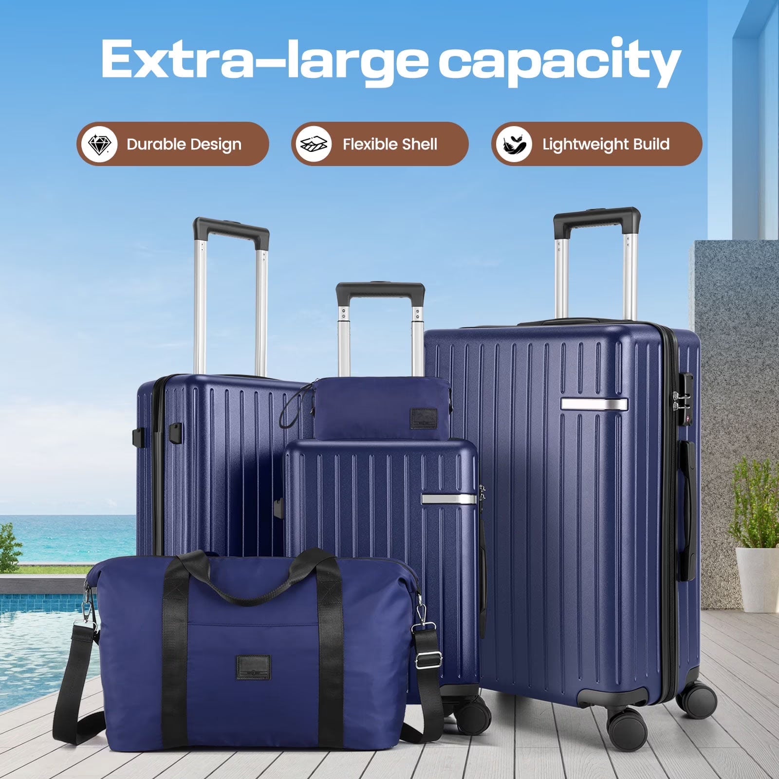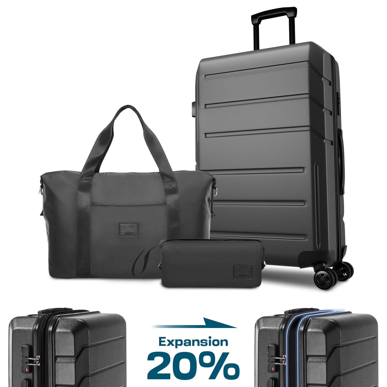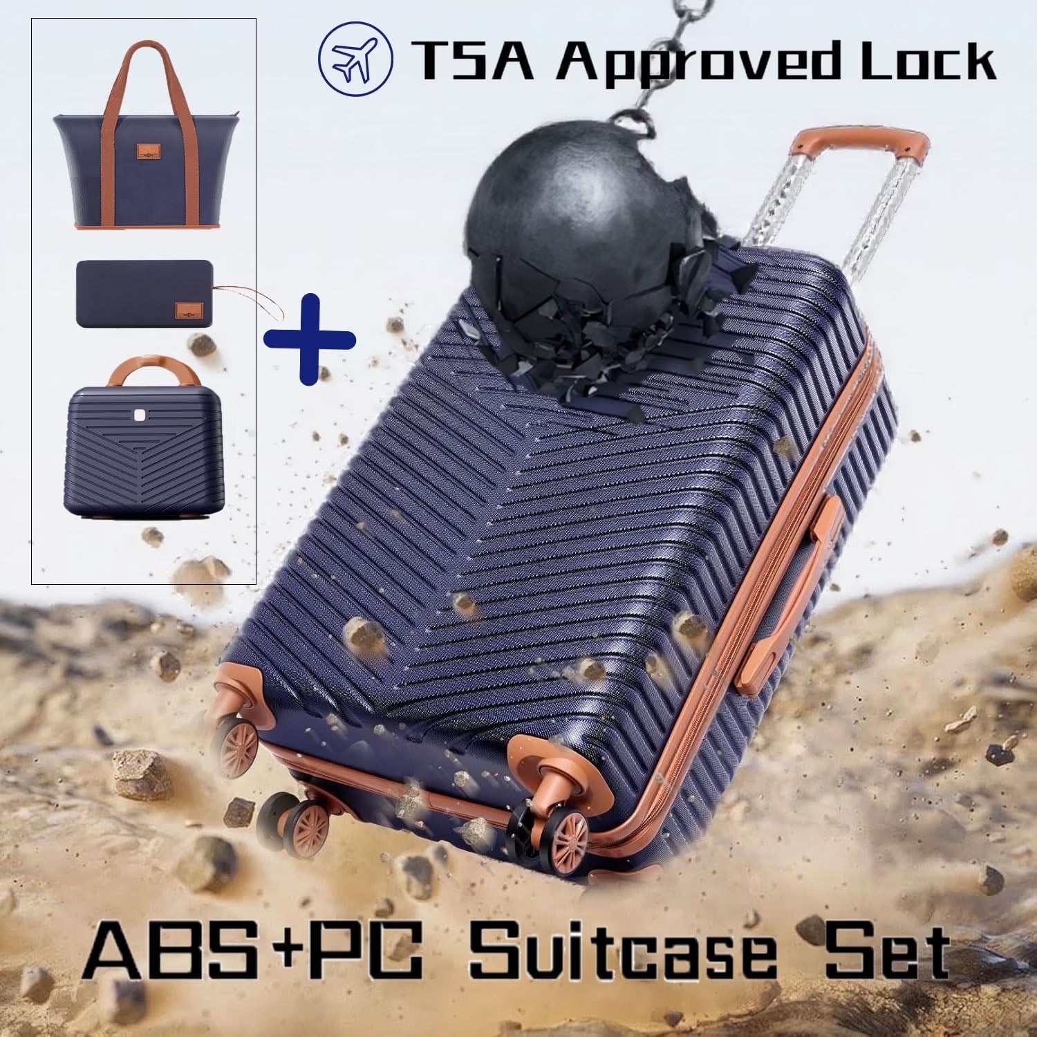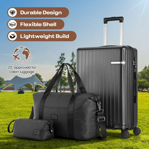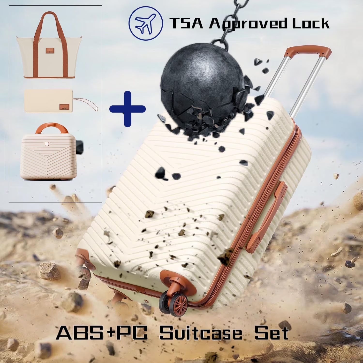 COBIZI Luggage Sets 4 Piece with 360° Spinner Wheels, Carry on Luggage with TSA Lock, Luitcases Hardshell ABS+PC, Suitcase Set for Travel, Beige(13/20+Travel Bag + Toiletry Bag)