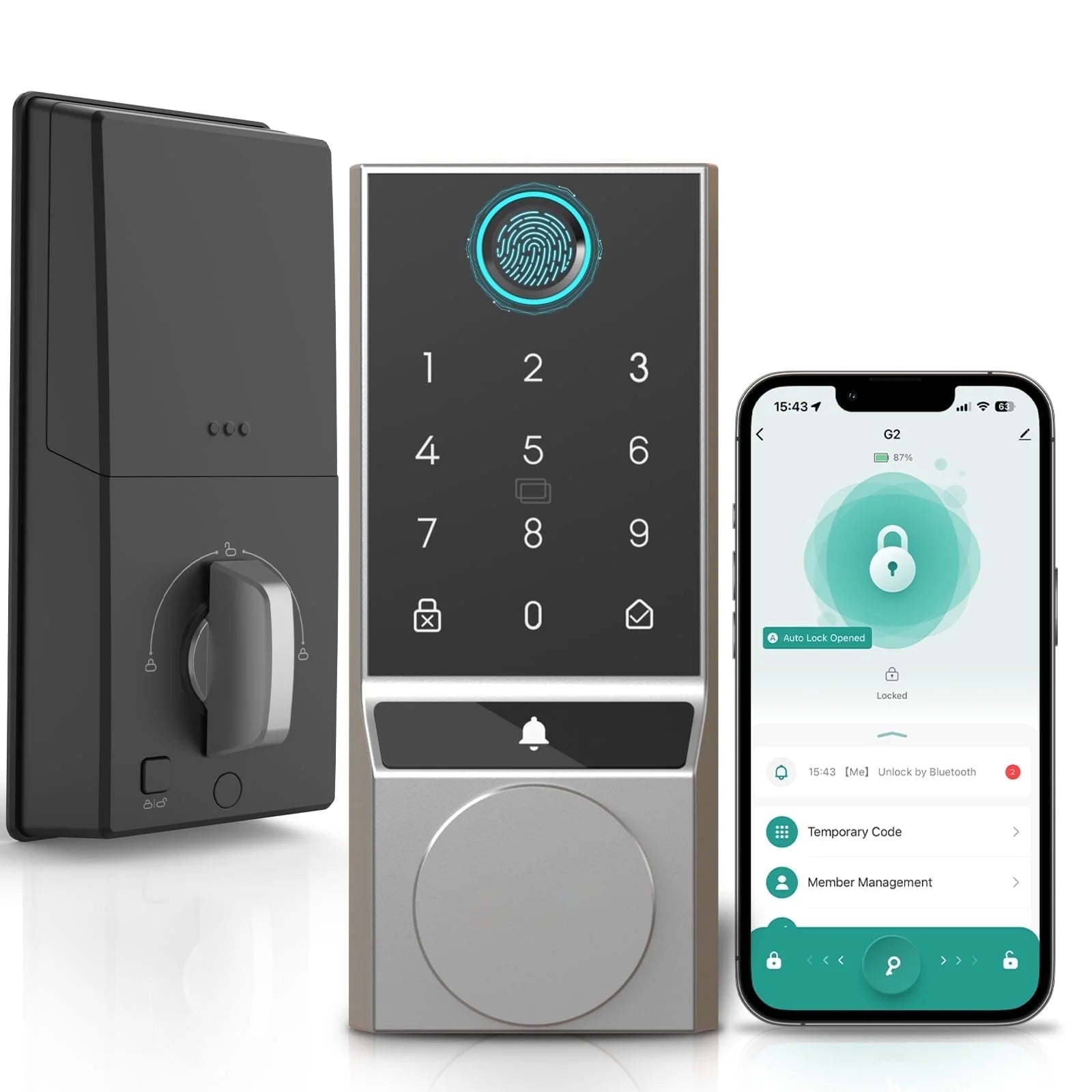 🔒【6 Unlocking Methods】Fingerprint identification, password (including temporary password), IC card, traditional key, app remote control, voice with Alexa/Google voice assistant.