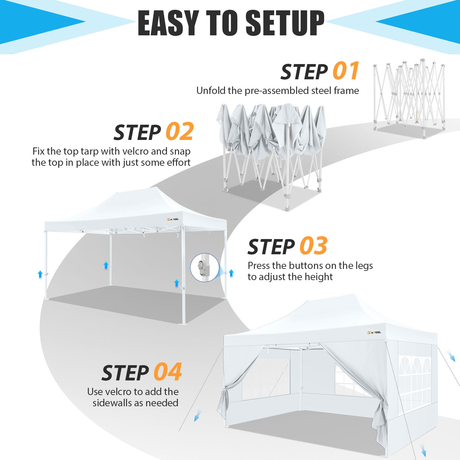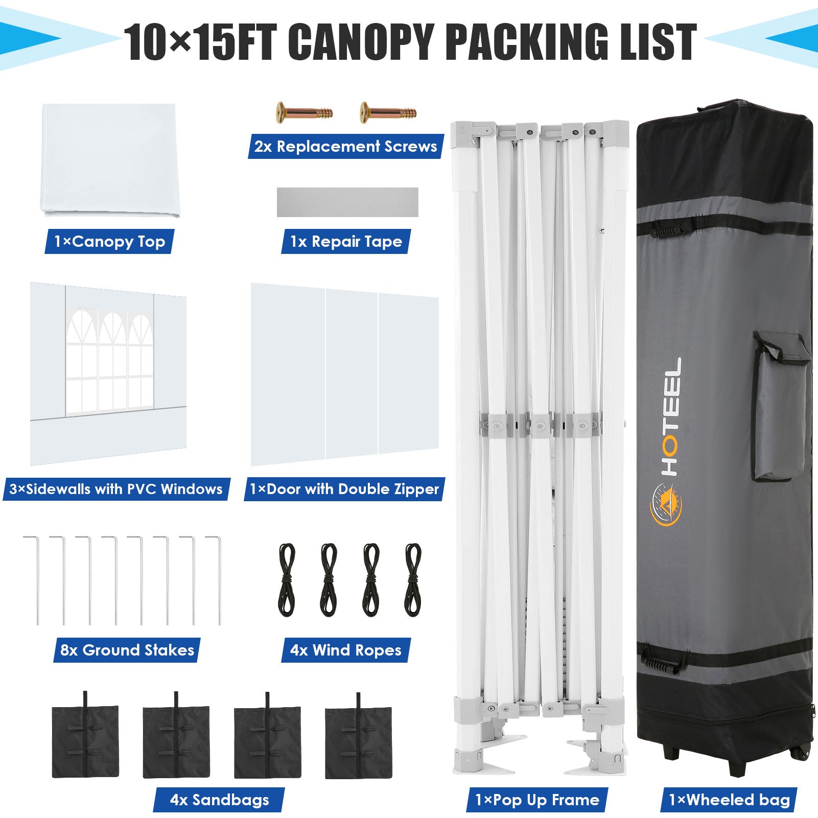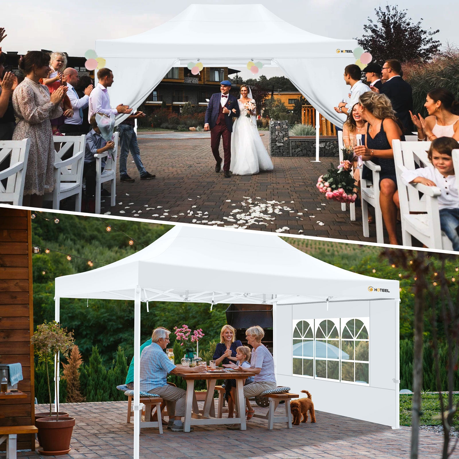 HOTEEL 10x15 Canopy Tent with 4 Sidewalls,Heavy Duty Pop Up Canopy Tent for Parties Wedding,Commercial Canopy with Roller Bag,UV 50+&Upgraded Waterproof,Thickened Legs,White