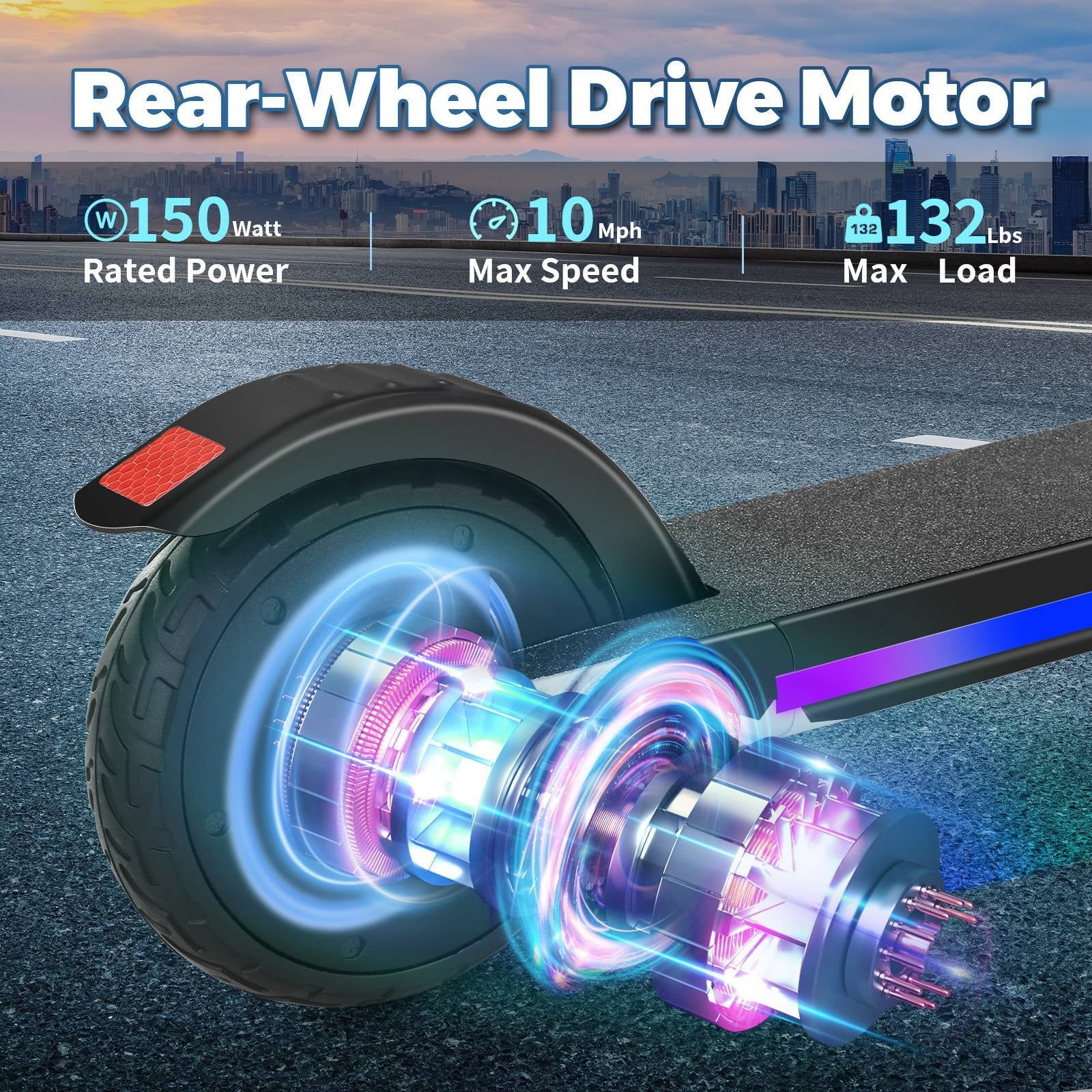 HOTEEL Electric Scooter for Kids Ages 6-12, 150W Motor, 10 mph,Adjustable Speed & Height, Colorful Lights, LED Display, Foldable Kids Electric Scooter