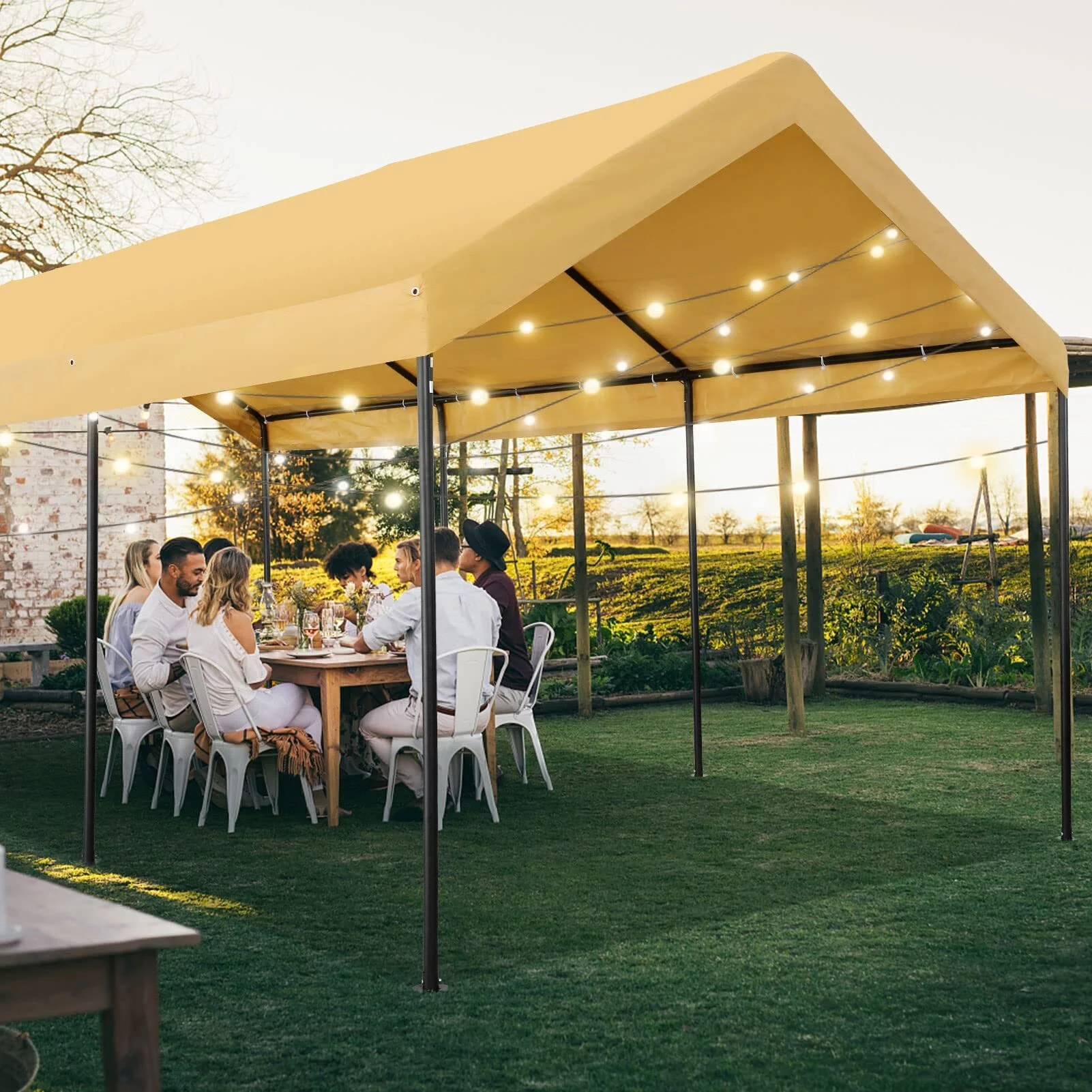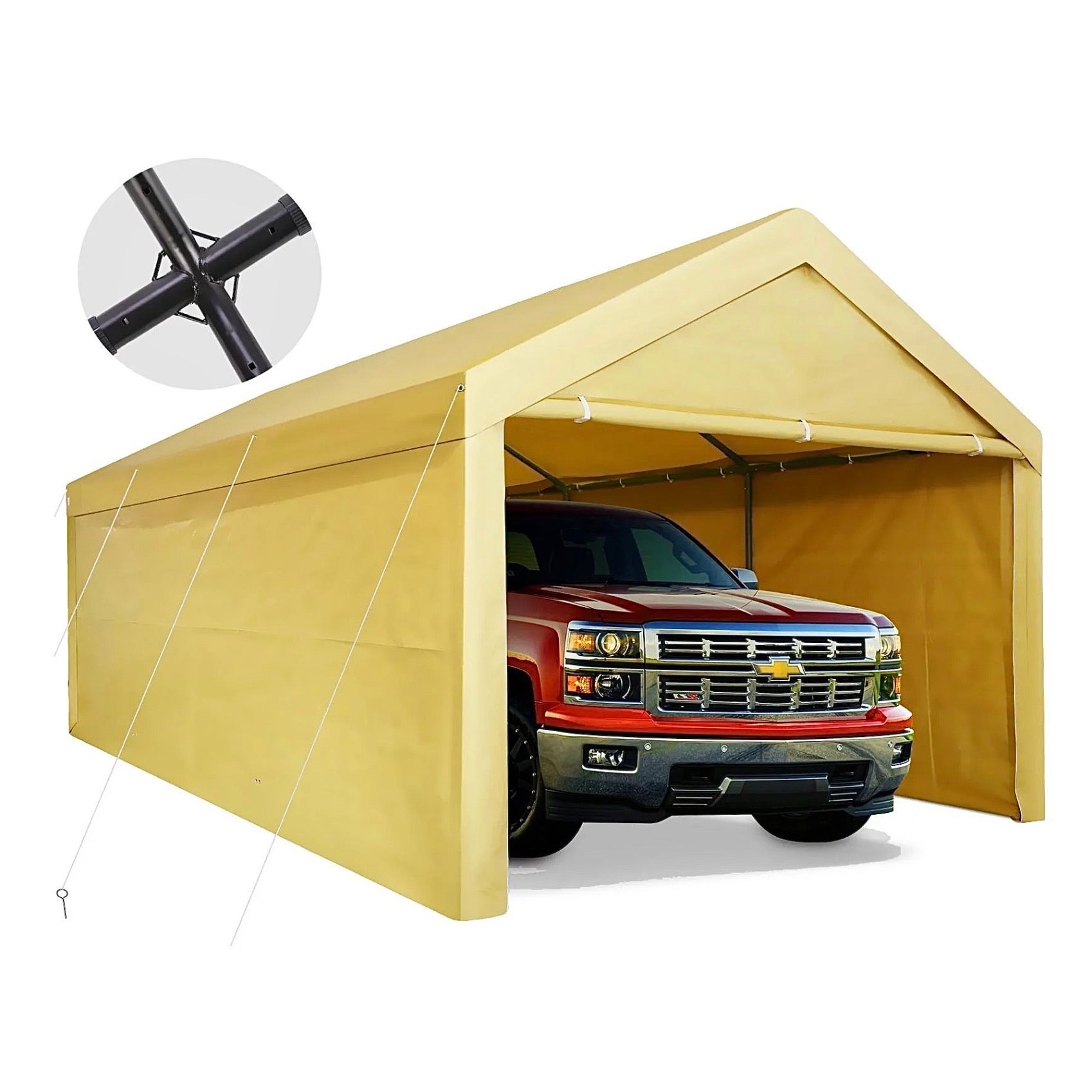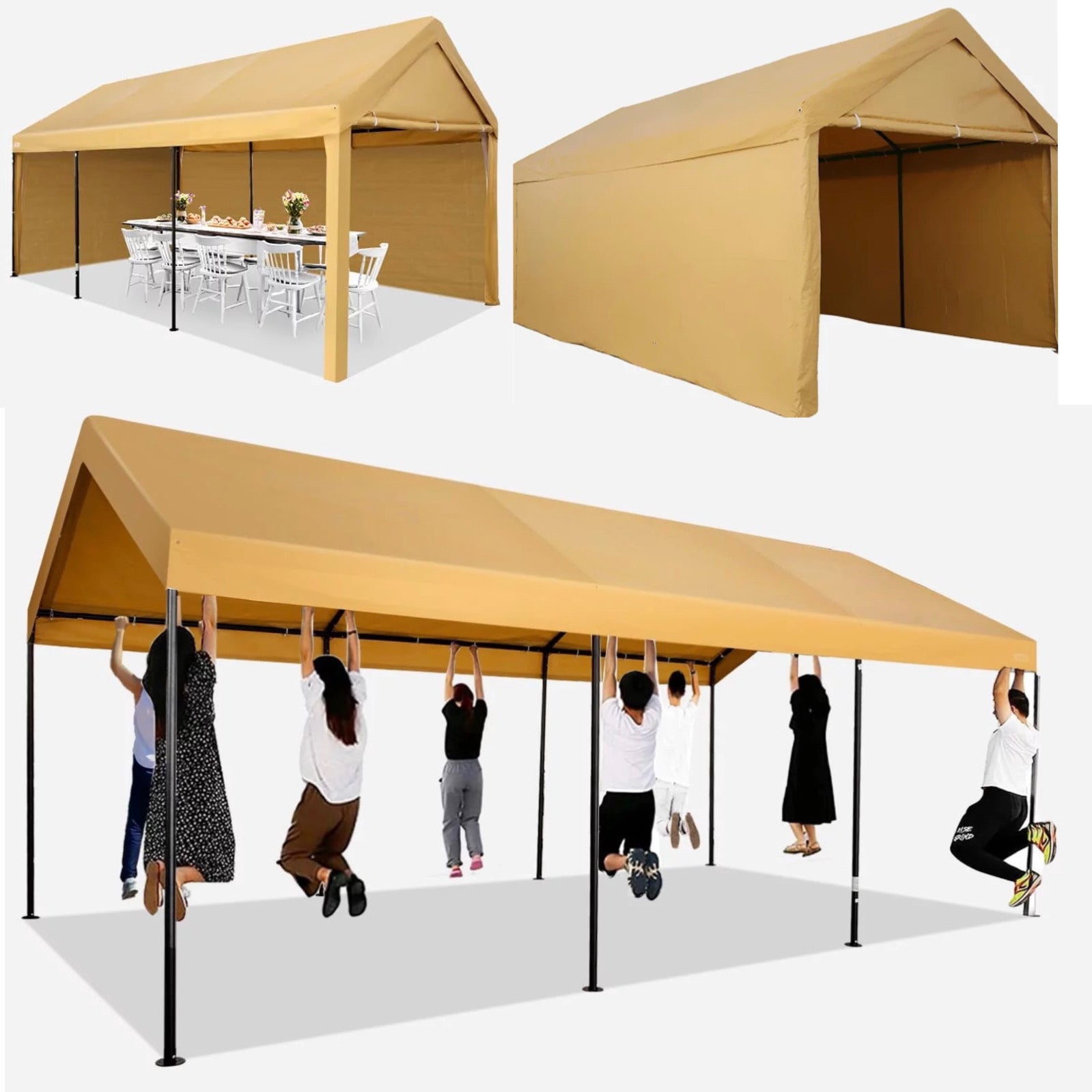 YUEBO Carport, 10'x20' Extra großes, robustes Autozelt mit pulverbeschichtetem Stahlrahmen, tragbare Garage mit abnehmbaren Seitenwänden und Türen, Autoüberdachung mit Ganzjahresplane für Outdoor-Party, Geburtstag, Garten, Beige-Gelb