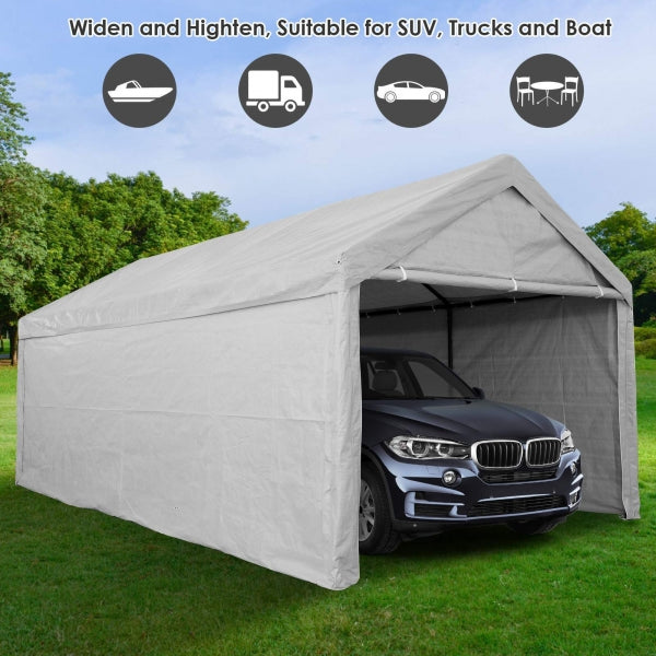 【Wasserdichtes Dach】 Das 10x20 Carport-Material besteht aus drei Schichten Ripstop-Polyethylengewebe, das wasserdicht, UV-beständig, lichtbeständig und kratzfest ist, um Ihr Auto oder Boot vor allen Wettereinflüssen wie Sonne, Wind, Regen und Staub zu schützen und Hagel das ganze Jahr über.