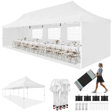COBIZI 10 x 30 ft canopy tent features a one-step setup steel frame, waterproof canopy...