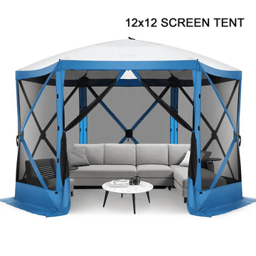 OBlZl 12'x12' Pop Up Gazebo 6-Sided Screen House Tent for Camping, Outdoor Instant Stargazing Gazebo