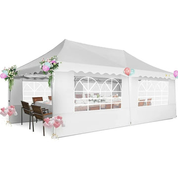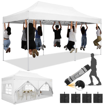 【STRONG AND STABLE CONSTRUCTION】The 10x20 canopy with sidewalls is made of powder coated steel tubing...