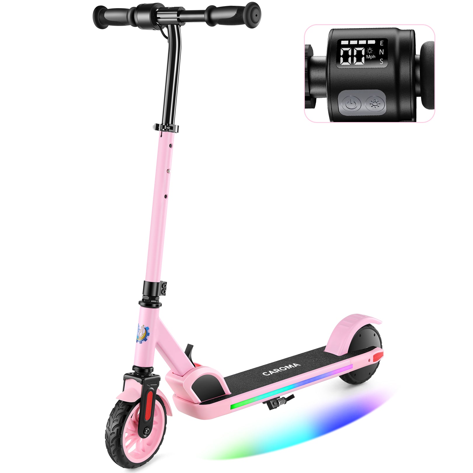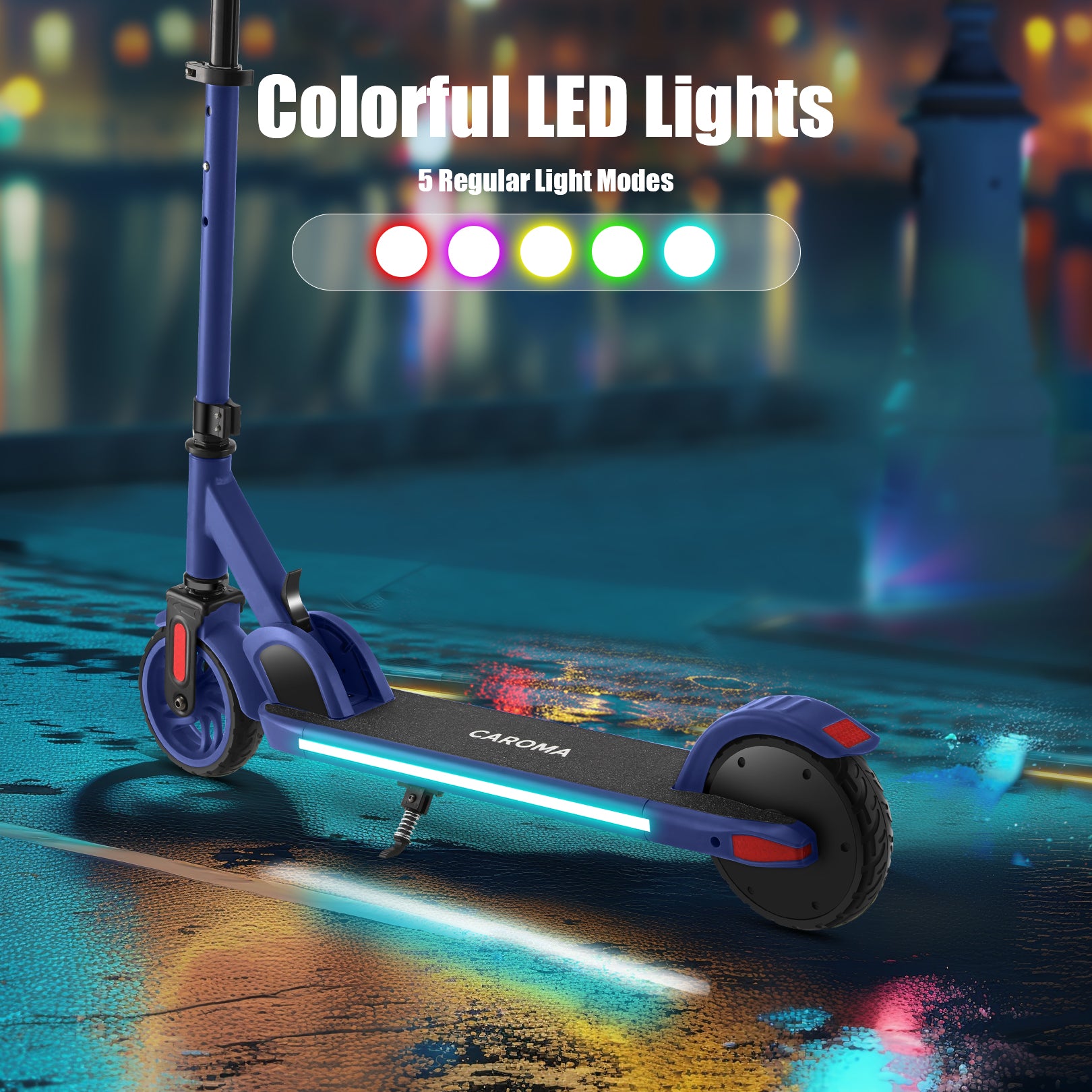 🛴[Colorful LED Lights]Available in six colors, the Caroma electric scooter for kids ages 6-14 is equipped with colorful pedal lights, which not only makes riding stylish and fun but also improves visibility and safety on the road. The beautiful and dynamic light bar will make children's childhood time full of energy and joy.