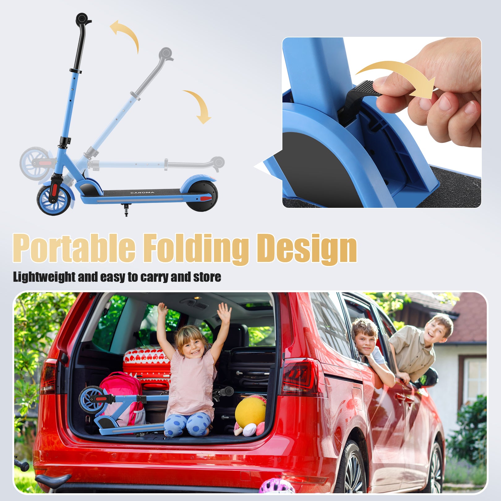 Caroma 180W Electric Scooter | 3 Speeds and Height Adjustable | Max Load 132lbs | LED Visible Display for Kids Ages 6-14,Ideal Gifts for Kids