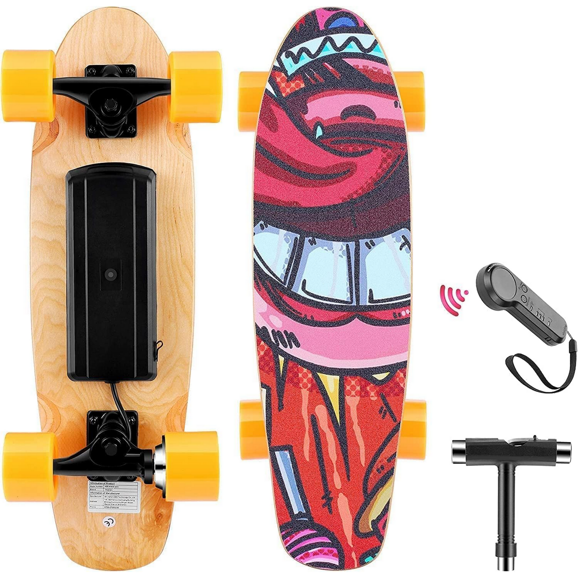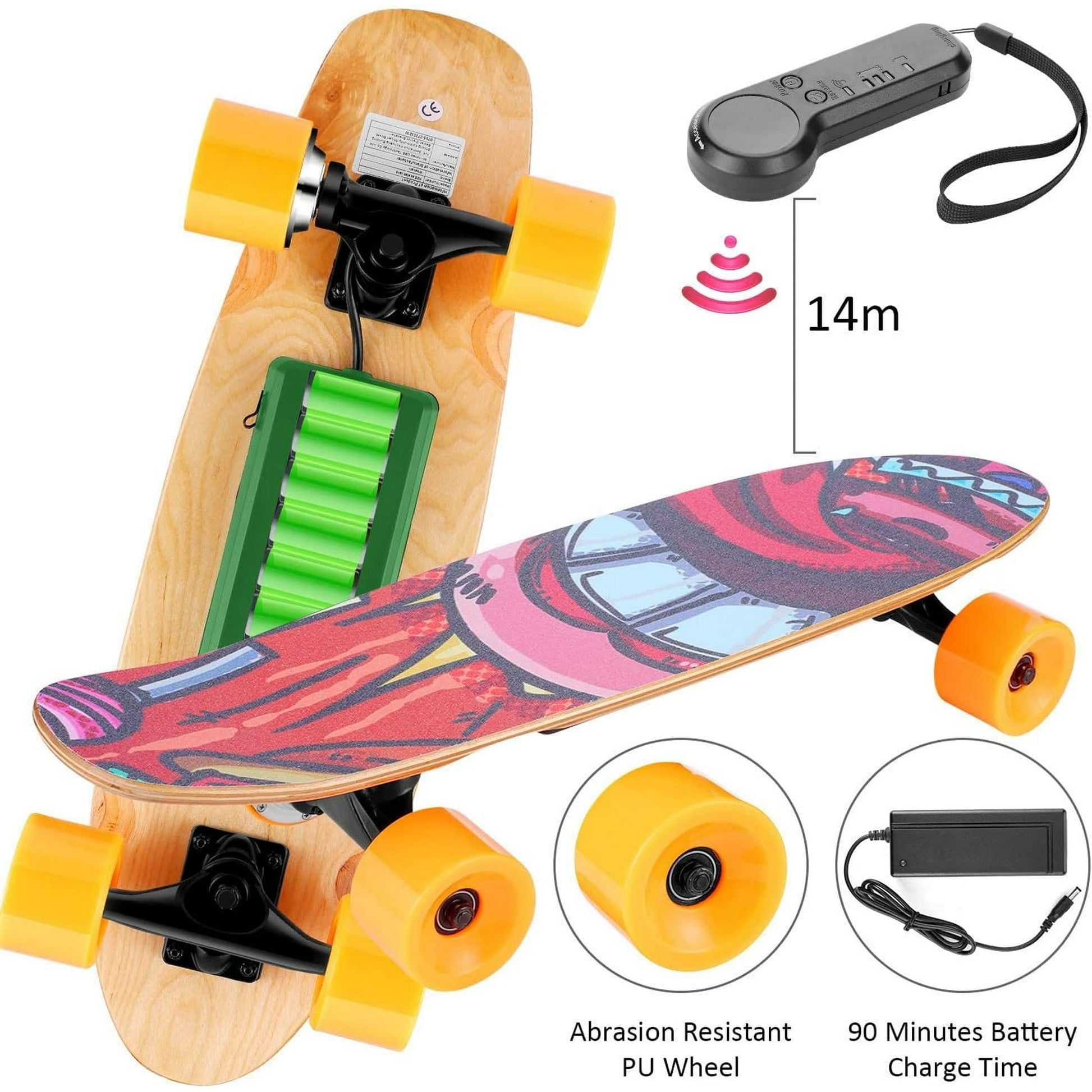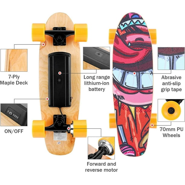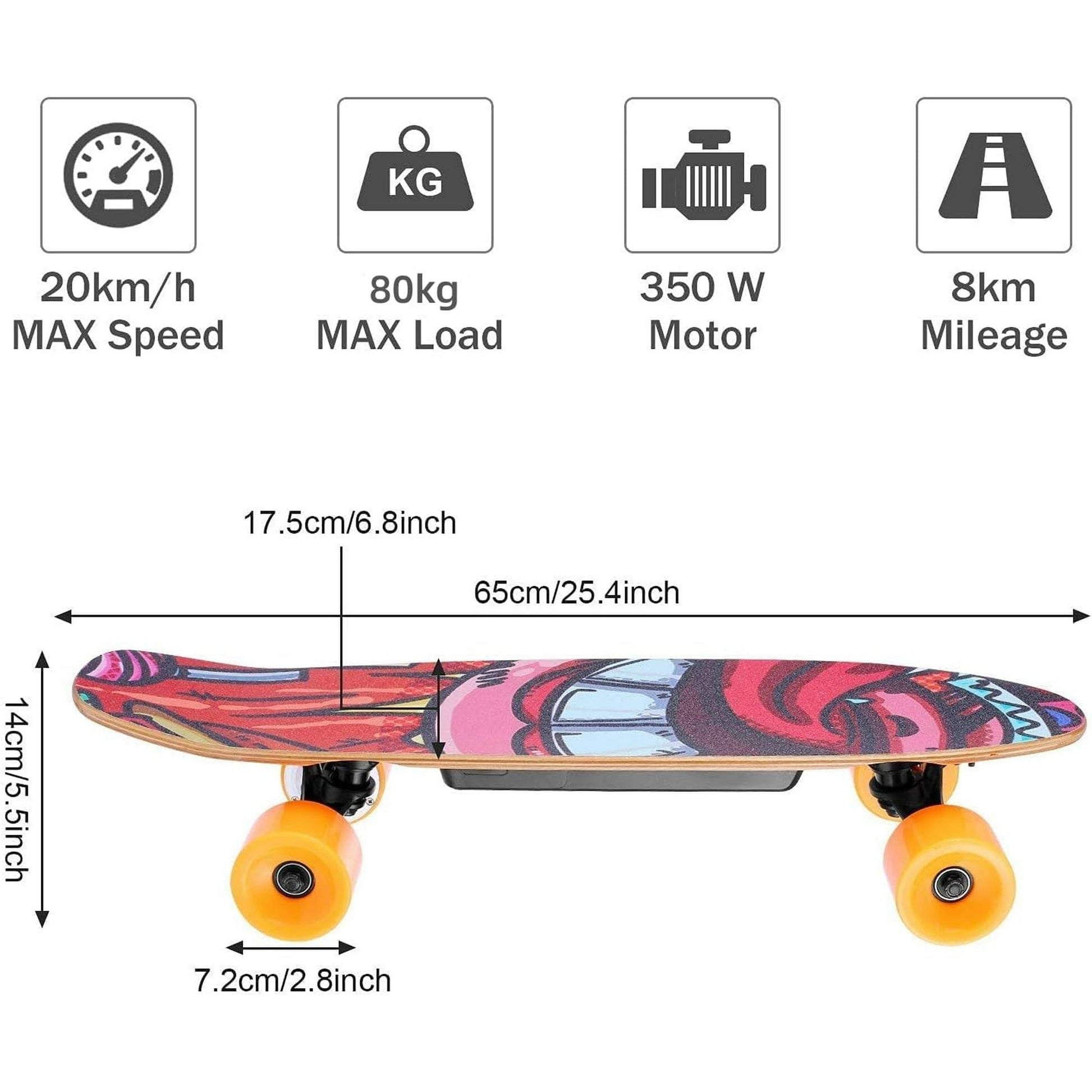 Caroma 350W Electric Skateboard with Wireless Remote Control, for Adult, Teens and Kids Orange
