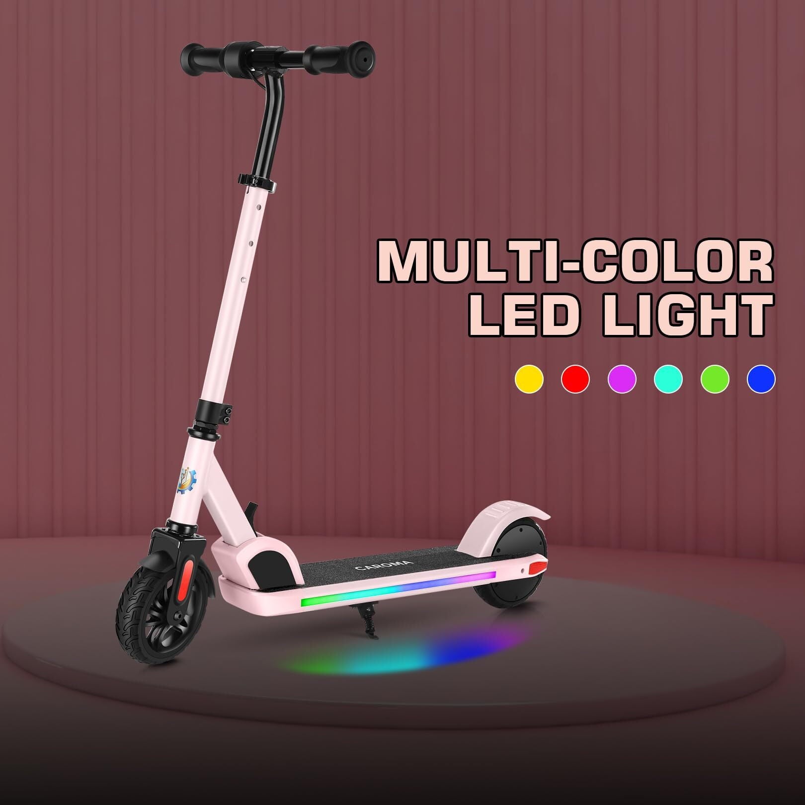 💖【Ride with Colorful Ambient Light】 Caroma E35 electric scooter for kids is equipped with colorful ambient lights to make riding more fun and a unique focal point in the crowd.
