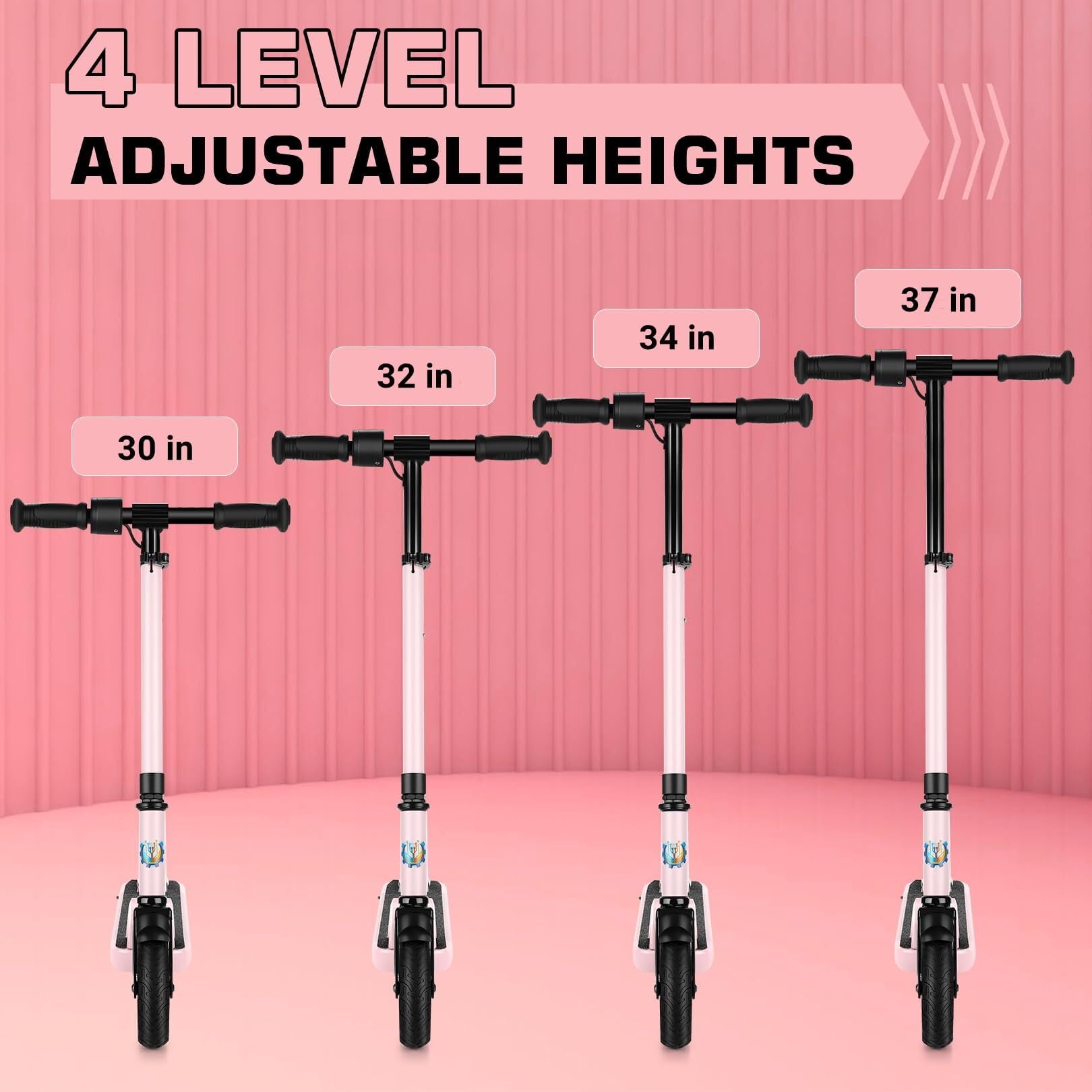 - 4 Adjustable Handlebar Height: 28 inches/31 inches/34 inches/37 inches, Such Adjustable Design Suitable for Kids and Adults 4.0~5.3 feet height