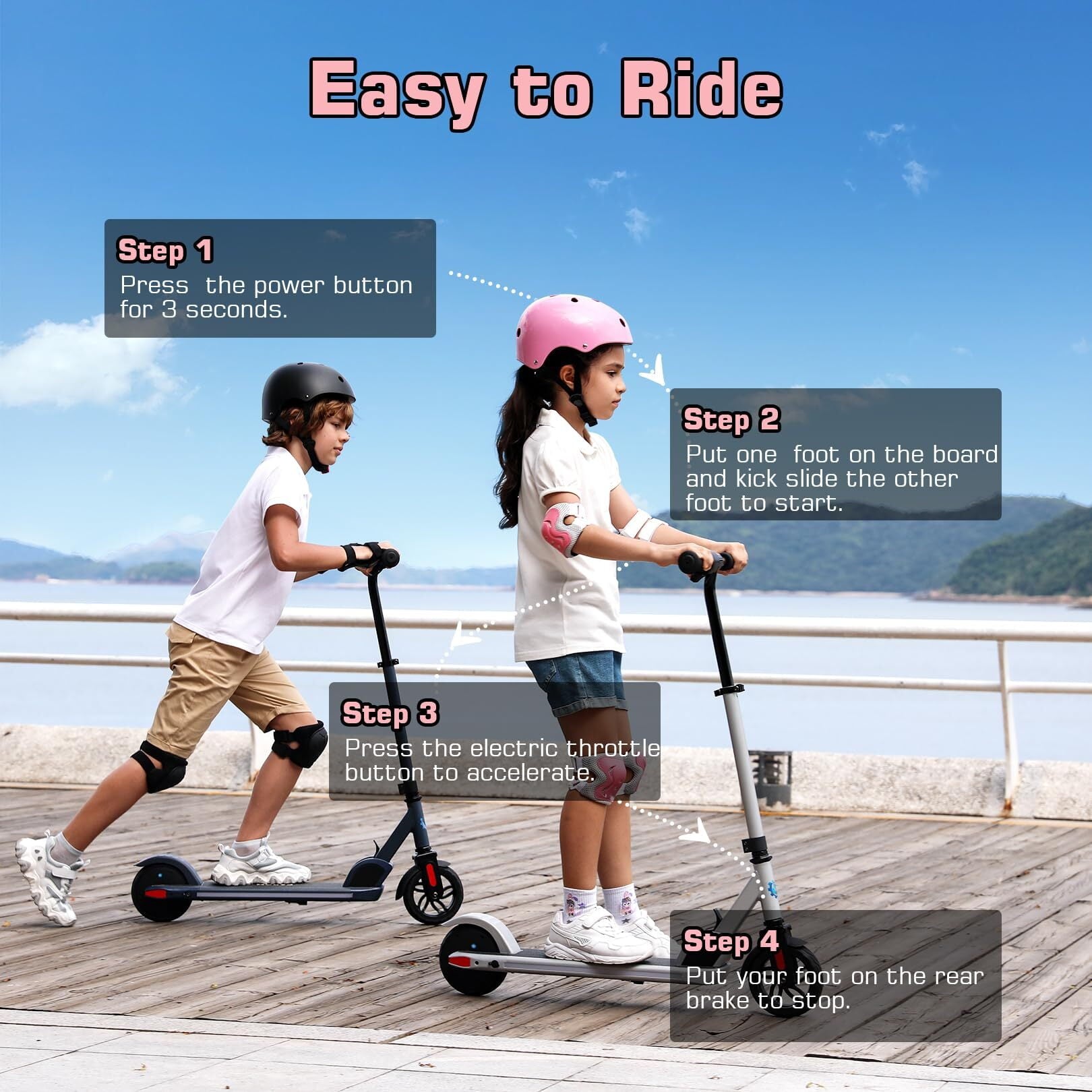 💖【Safe & Sturdy】The aluminium alloy frame is sturdy and durable. Meanwhile, we set up a non-zero start function for kids electric scooter. The scooter will start only when the speed reaches 1.8 mph. 6" reinforced rubber anti-skid wheels and rear fender brake provide safe and fast braking.