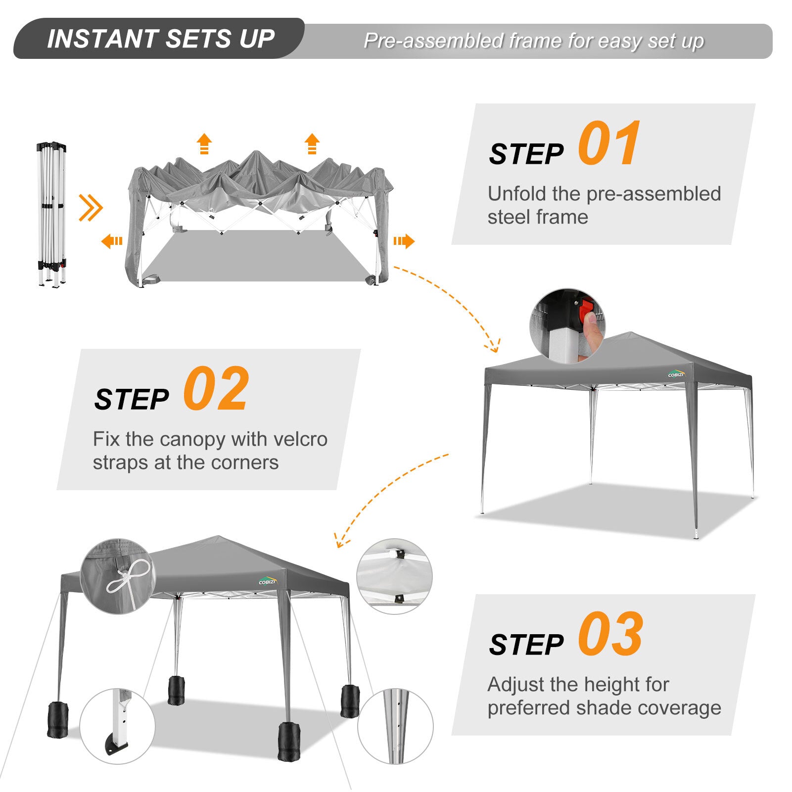 COBIZI 10x10 Ez Pop Up Canopy Tent, Commercial Instant Gazebo Tents for Parties, Waterproof Adjustable Outdoor Patio Backyard Canopy Party Tent,Gray