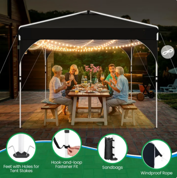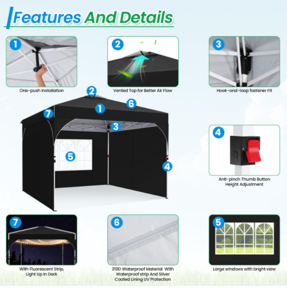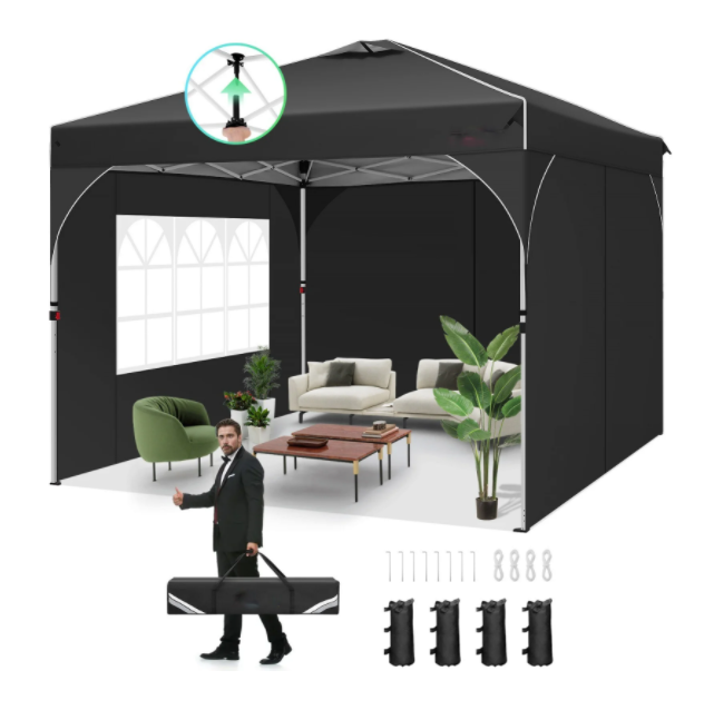 COBIZI 10x10 Pop Up Canopy Tent with Sidewalls,Waterproof Easy up Canopy for Camping,Outdoor Instant Folding Gazebo 10x10 Canopy for Party with Air vent,Reflective Strip,Carry Bag&Sandbags
