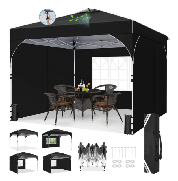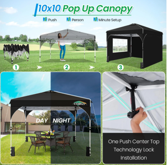 COBIZI 10x10 Pop Up Canopy with Sidewalls,Waterproof Easy up Canopy for Camping,Outdoor Instant Folding Gazebo 10x10 Canopy for Party with Carry Bag&Sandbags,Black