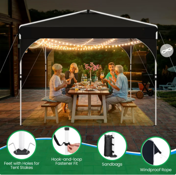 • Sturdy & Secure: Constructed with thickened alloy steel frame, this 10x10 pop-up canopy delivers superior strength and durability. For maximum stability and safety, it comes equipped with sturdy stakes, guy ropes, sandbags, and reflective strips for enhanced nighttime visibility. The robust construction perfectly complements its elegant design.