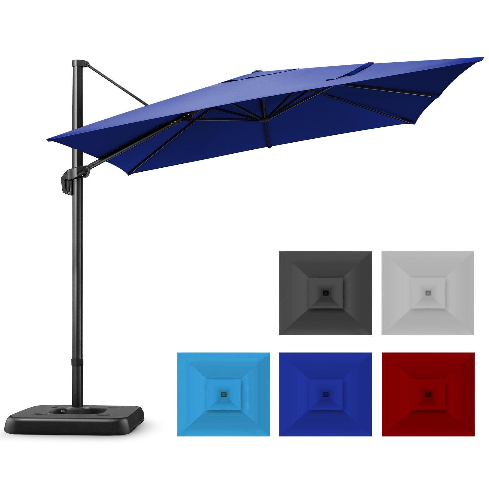 COBIZI 10x10FT Patio Offset Umbrella Solar Powered LED 360degrees Rotation Aluminum,Navy blue