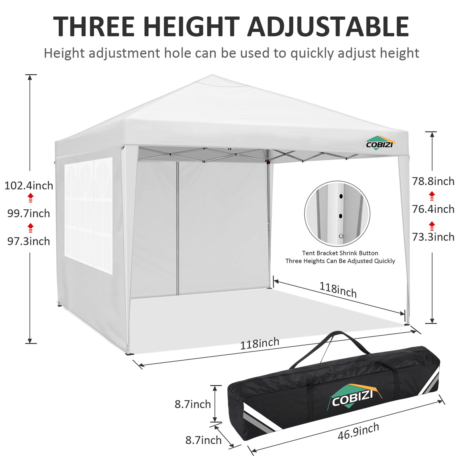 COBIZI 10x10ft Popup Canopy Waterproof Canopy with 4 Sidewalls Outdoor Commercial Instant Shelter Beach Camping Canopy Tent for Party