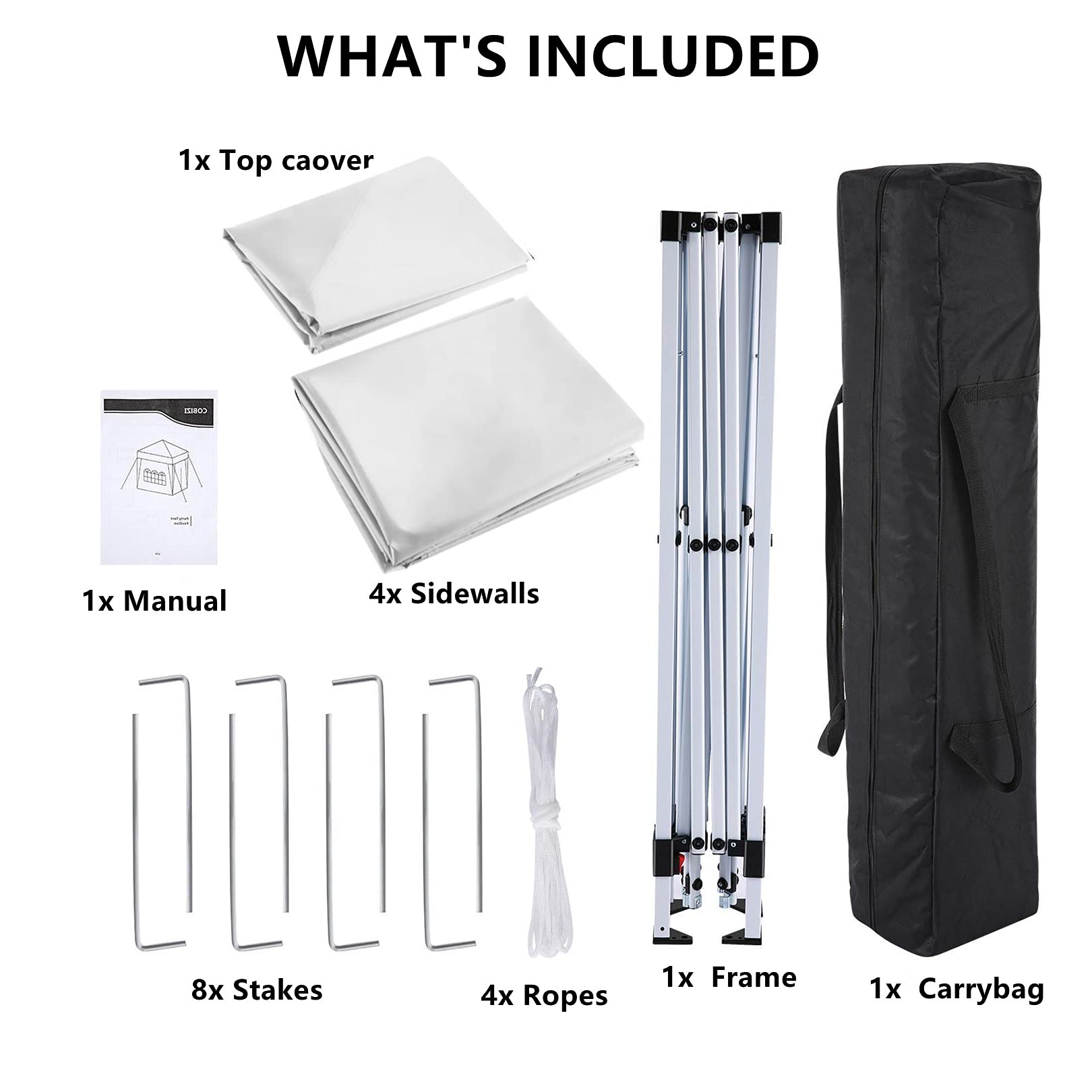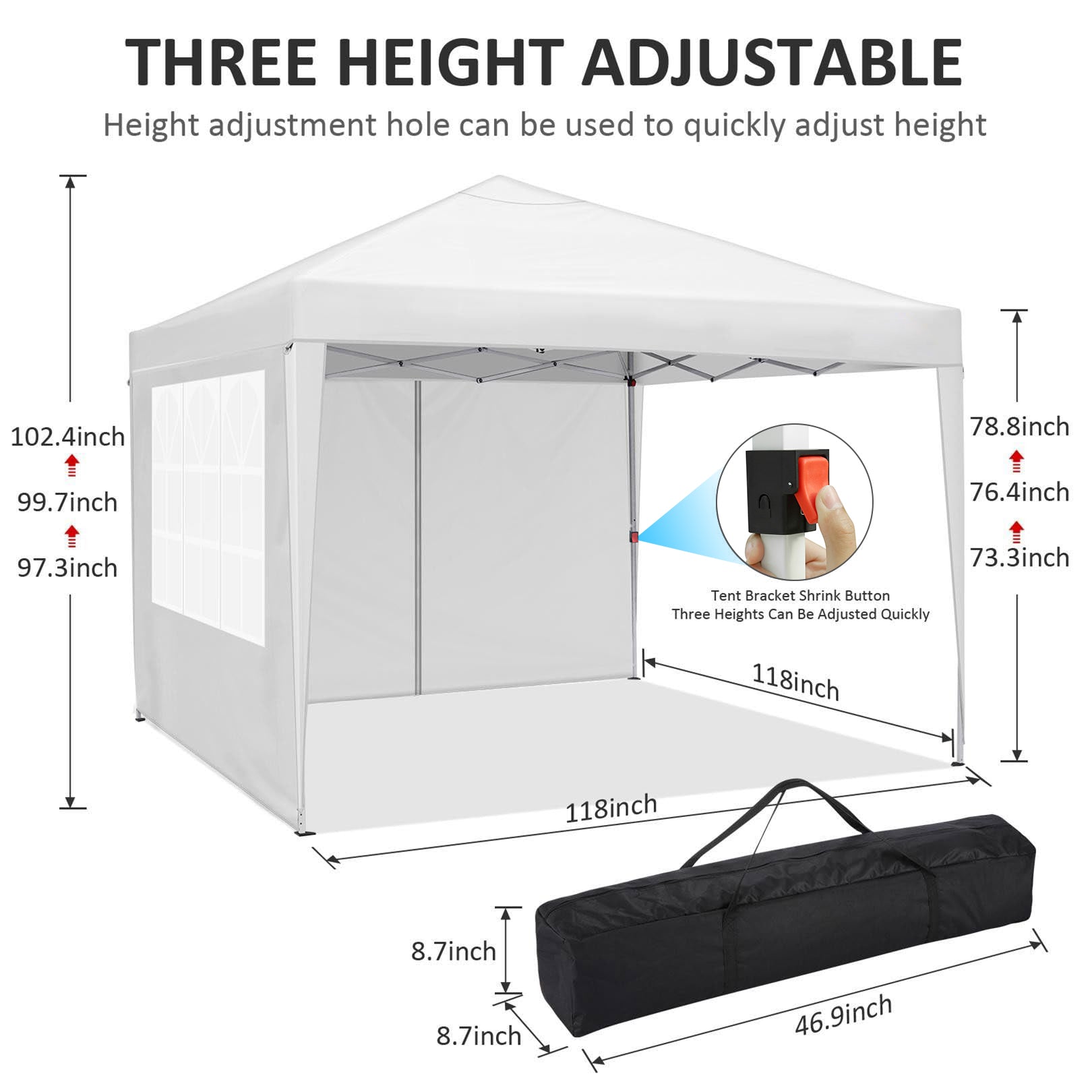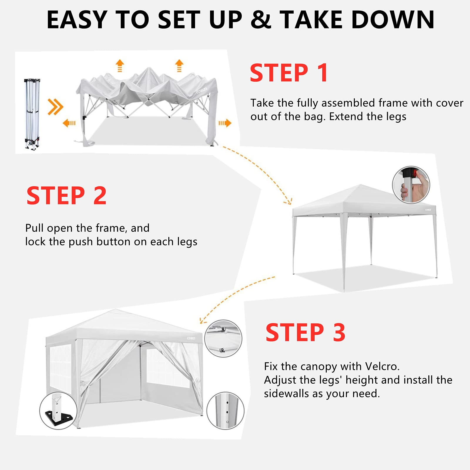 COBIZI 10x10ft Popup Canopy Waterproof Canopy with 4 Sidewalls Outdoor Commercial Instant Shelter Beach Camping Canopy Tent for Party, White