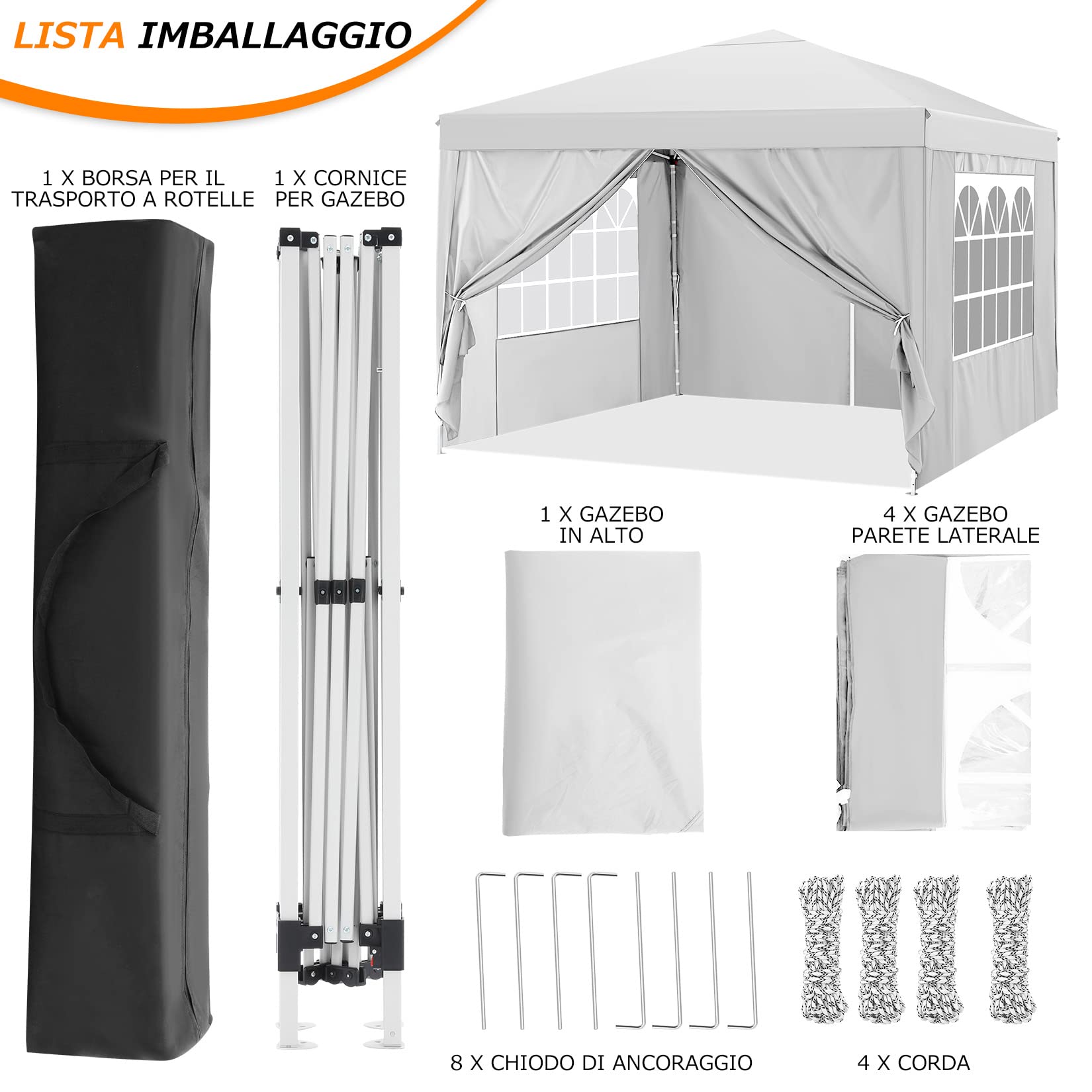 【EASY TO SET UP & TAKE DOWN】 Pop-up Gazebo Tent, with all parts assembled, is easy to set up and take down without any tools. One hold one of the leg while the other pull another legs to stretch out the frame. Detaching all of the wall velcro from the legs before pop in the canopy.