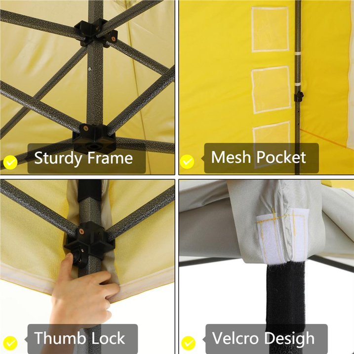 🤞 Upgraded Heavy-Duty Frame: The 10x15 commercial canopy frame features a full truss construction with a powder-coated finish, ensuring durability and rust resistance. This heavy-duty pop-up canopy is even capable of supporting individuals, showcasing its high-quality build. Utilize the included ropes and nails to enhance the stability of the 10x15 wedding tent gazebo.