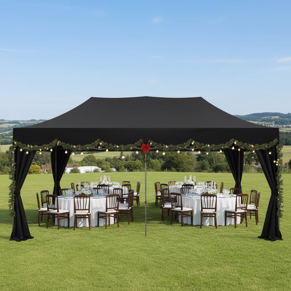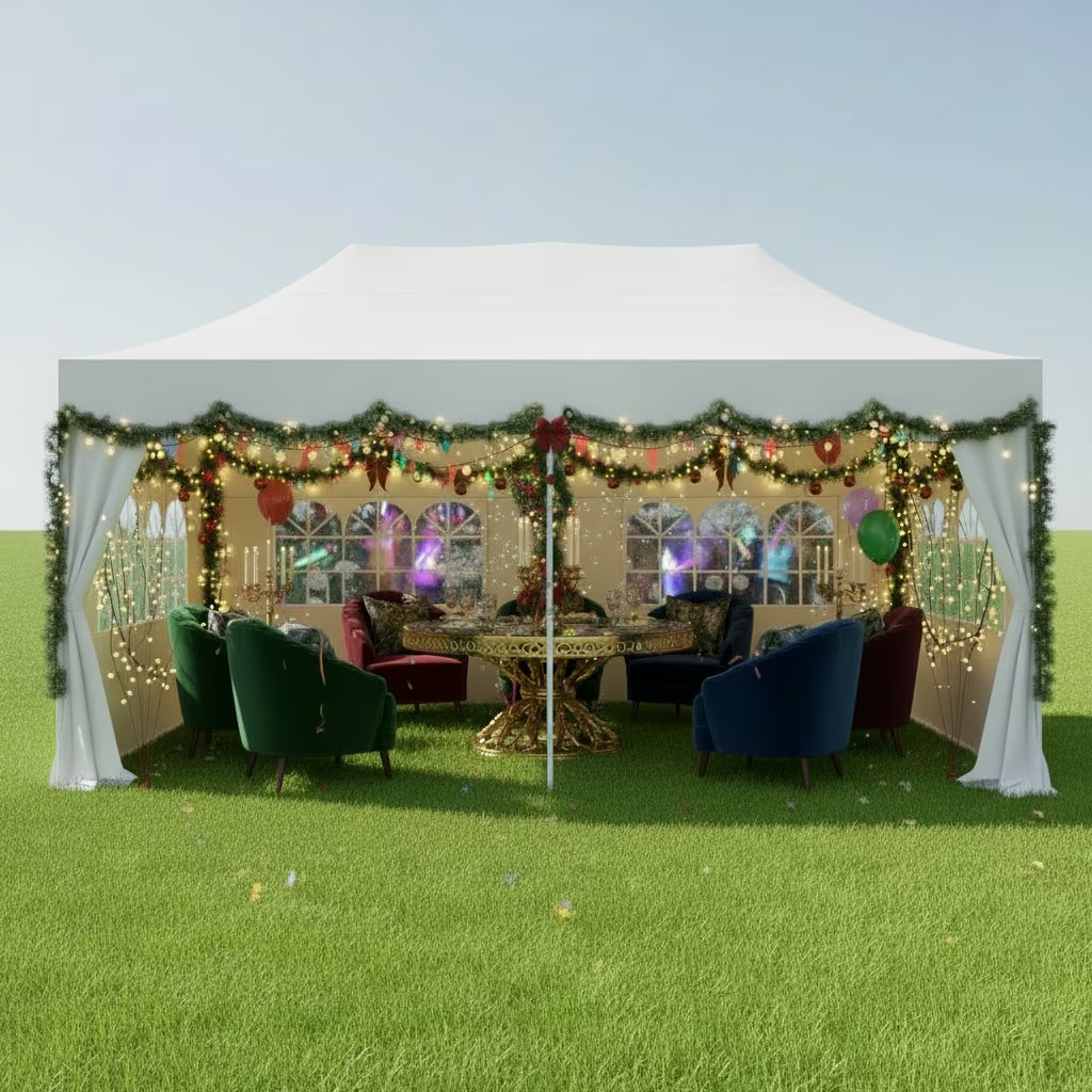 This 10x20 canopy tent is made of 420D Oxford cloth with double PU coating, offering UPF 50+ protection that blocks 99% of harmful UV rays. Waterproof pressure reaches 2.1 psi, nearly double that of standard tents, ensuring complete rain protection. The commercial-grade alloy steel frame features 1.26" diameter pipes with 0.03" wall thickness, making it stronger and more durable than common tents.