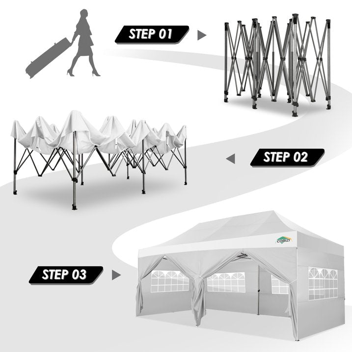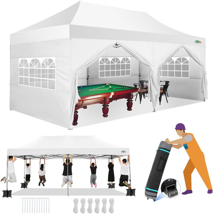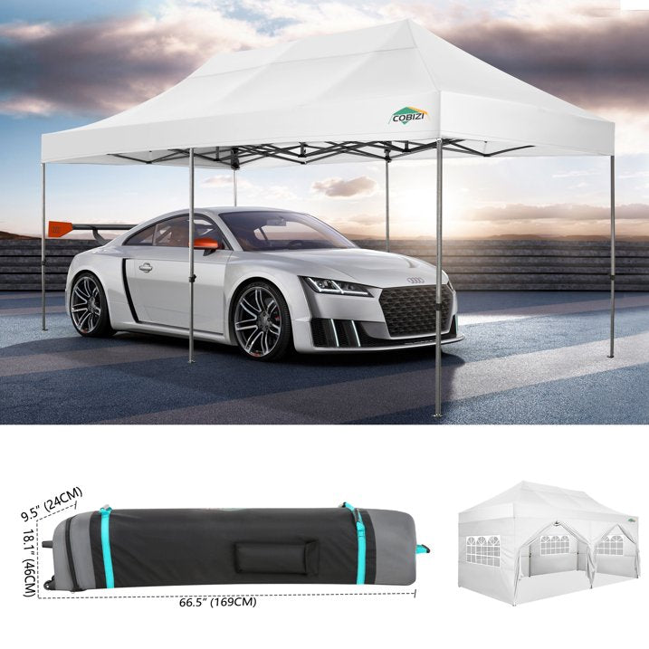 COBIZI 10x20 Heavy Duty Pop up Canopy with 6 Sidewalls,Upgrade Frame Commercial Heavy Duty Tent,Waterproof Outdoor Party Wedding Tent Canopy,3 Heigh Adjustable Gazebo with Wheeled Bag,White