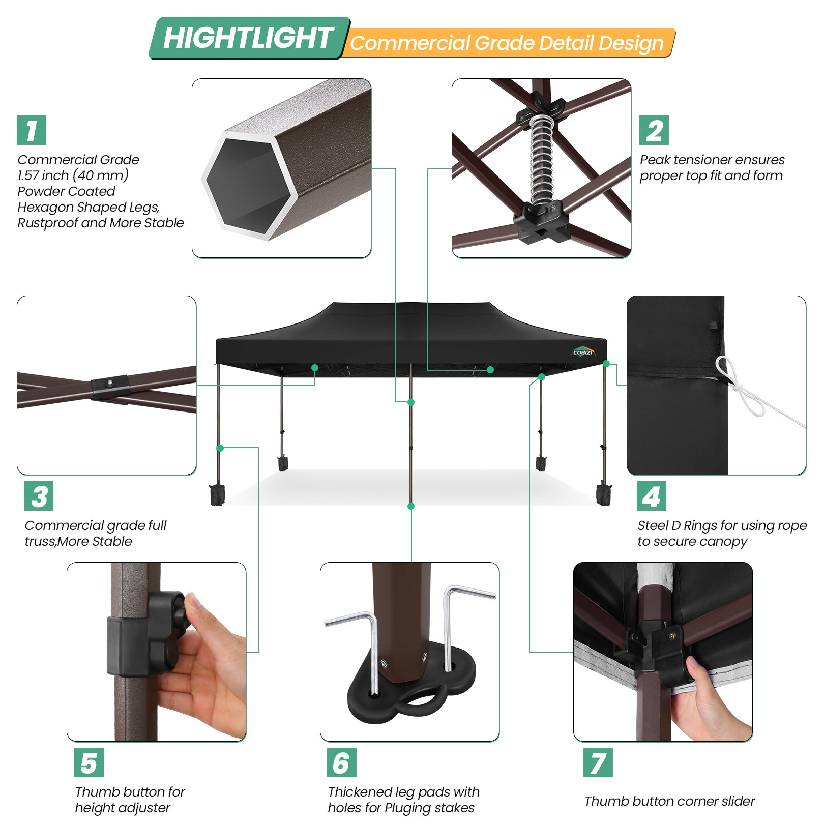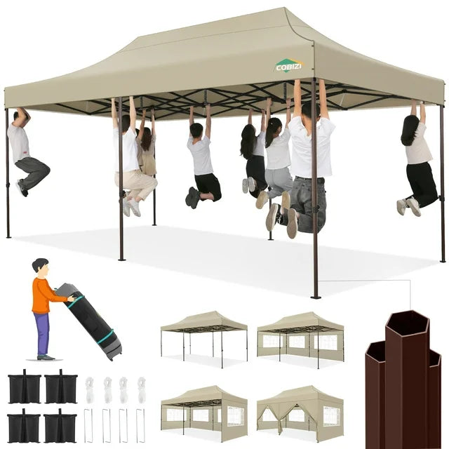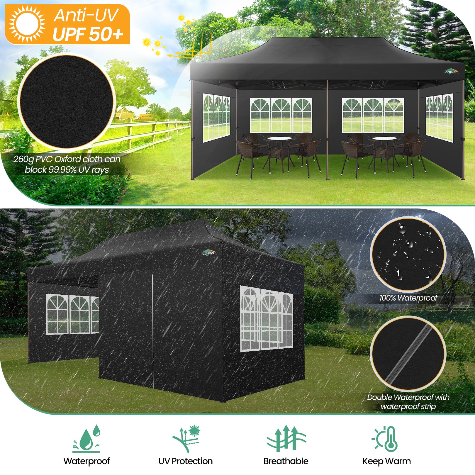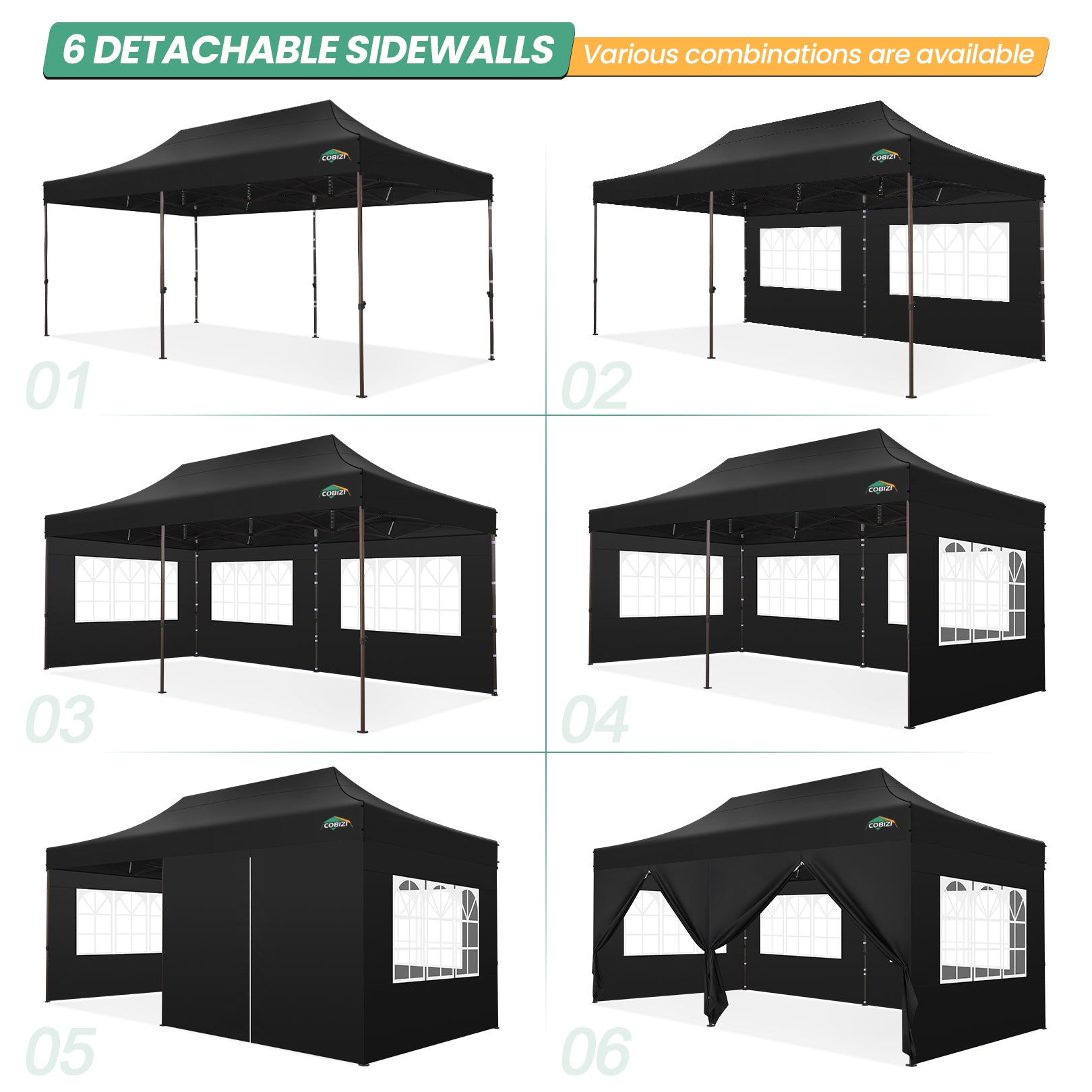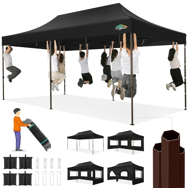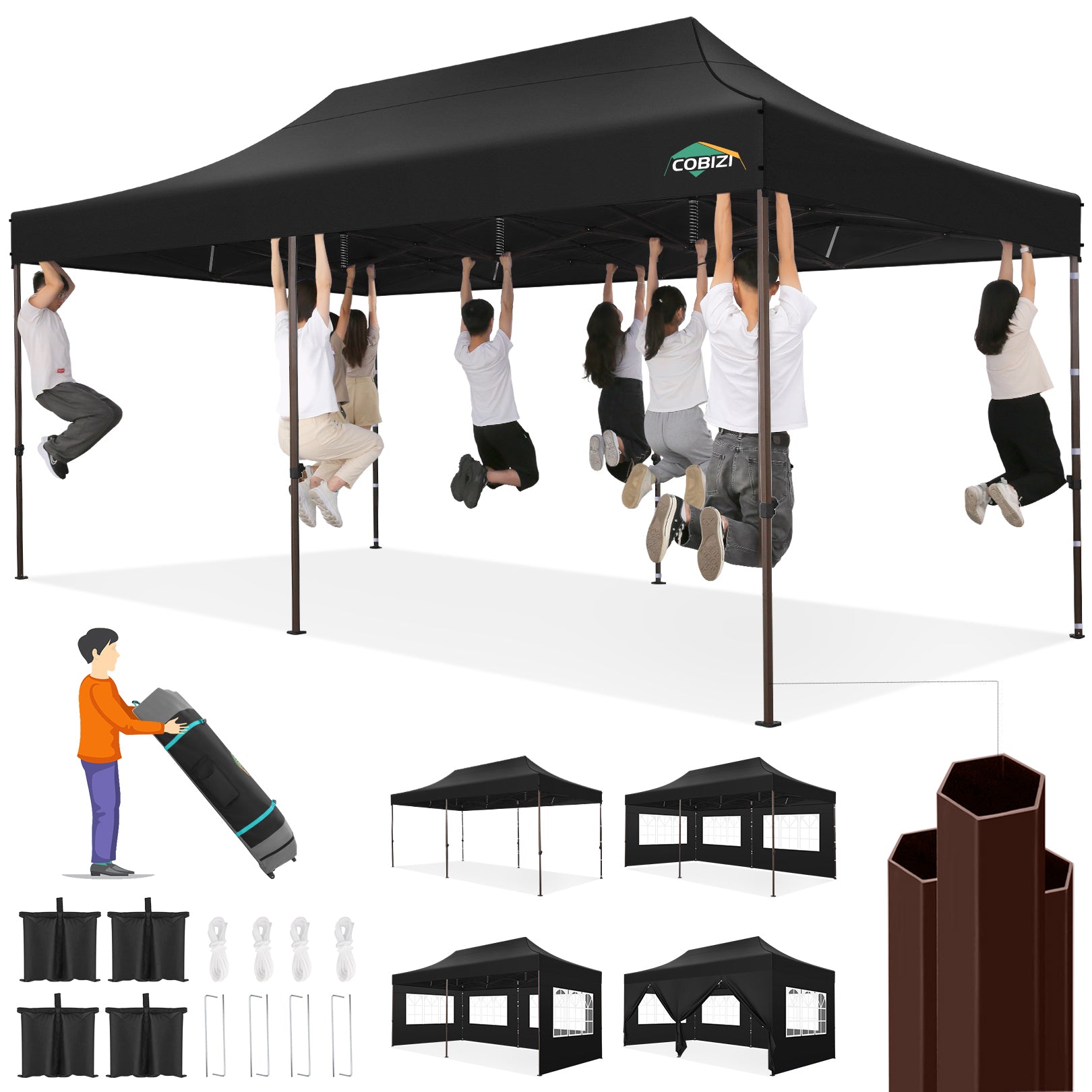 COBIZI 10x20 Pop Up Canopy Tent Heavy Duty with 6 Removable Sidewalls, Commercial Heavy Duty Pop Up Tent for Parties All Weather Waterproof and UV 50+ Wedding Tent with Roller Bag(Black)