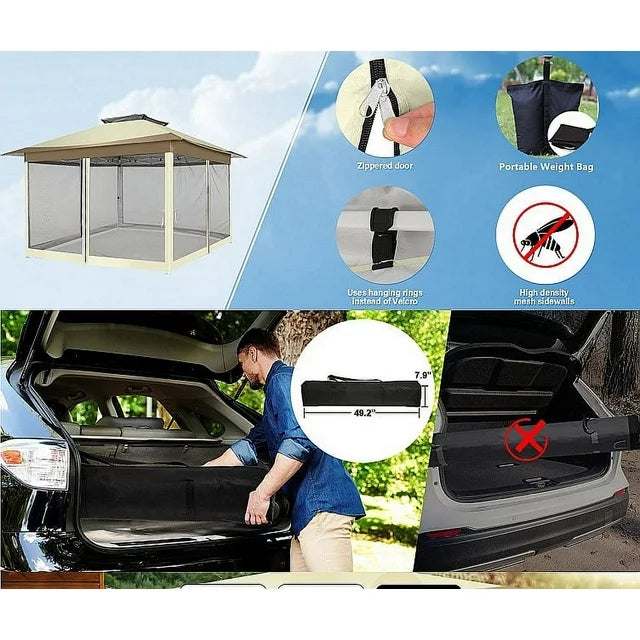 COBIZI will be your best choice.COBIZI 12x12 pop up gazebo tent with side walls is the perfect place for friends and family to gather. This 12x12 gazebo canopy tent with 144 square Ft of shade, extends your living space from indoors to outdoors while creating a comfortable and inviting space for your family.
