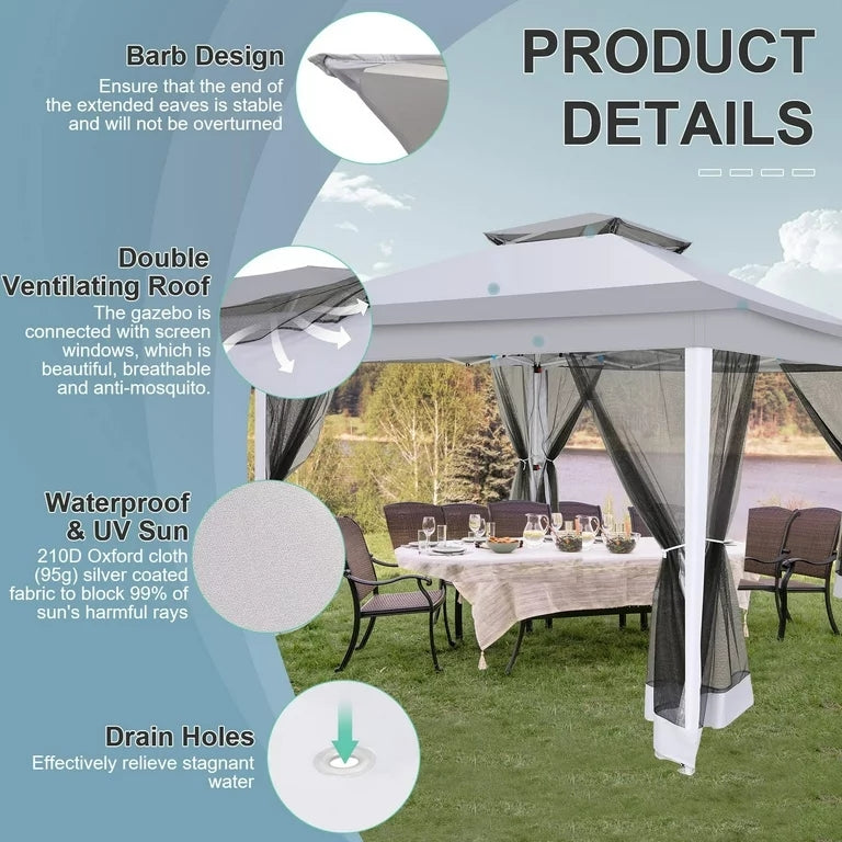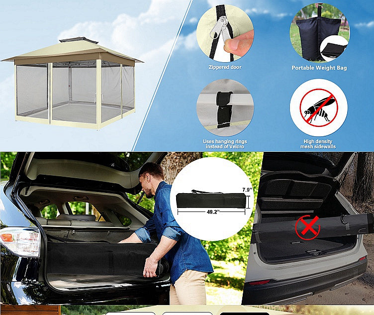 COBIZI will be your best choice.COBIZI 12x12 pop up gazebo tent with side walls is the perfect place for friends and family to gather. This 12x12 gazebo canopy tent with 144 square Ft of shade, extends your living space from indoors to outdoors while creating a comfortable and inviting space for your family.
