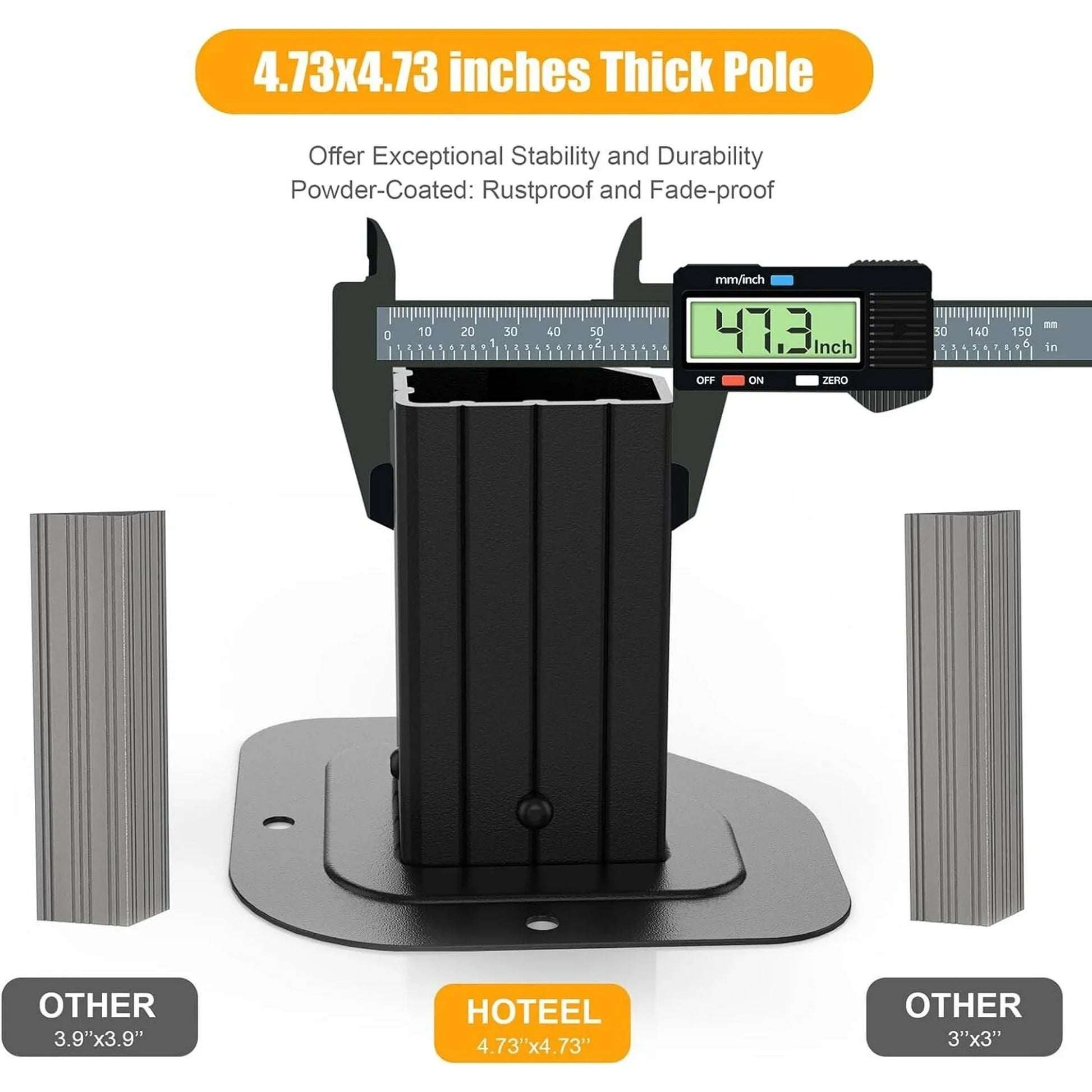 [Reinforced Rust-Resistant Frame] Built with heavy-duty powder-coated aluminum, the frame resists rust, corrosion, peeling, and scratches—ensuring long-lasting outdoor performance. Pre-drilled bases and included expansion bolts offer secure installation on concrete. (Note: Wood floor installation requires wood-specific expansion screws, not included.)
