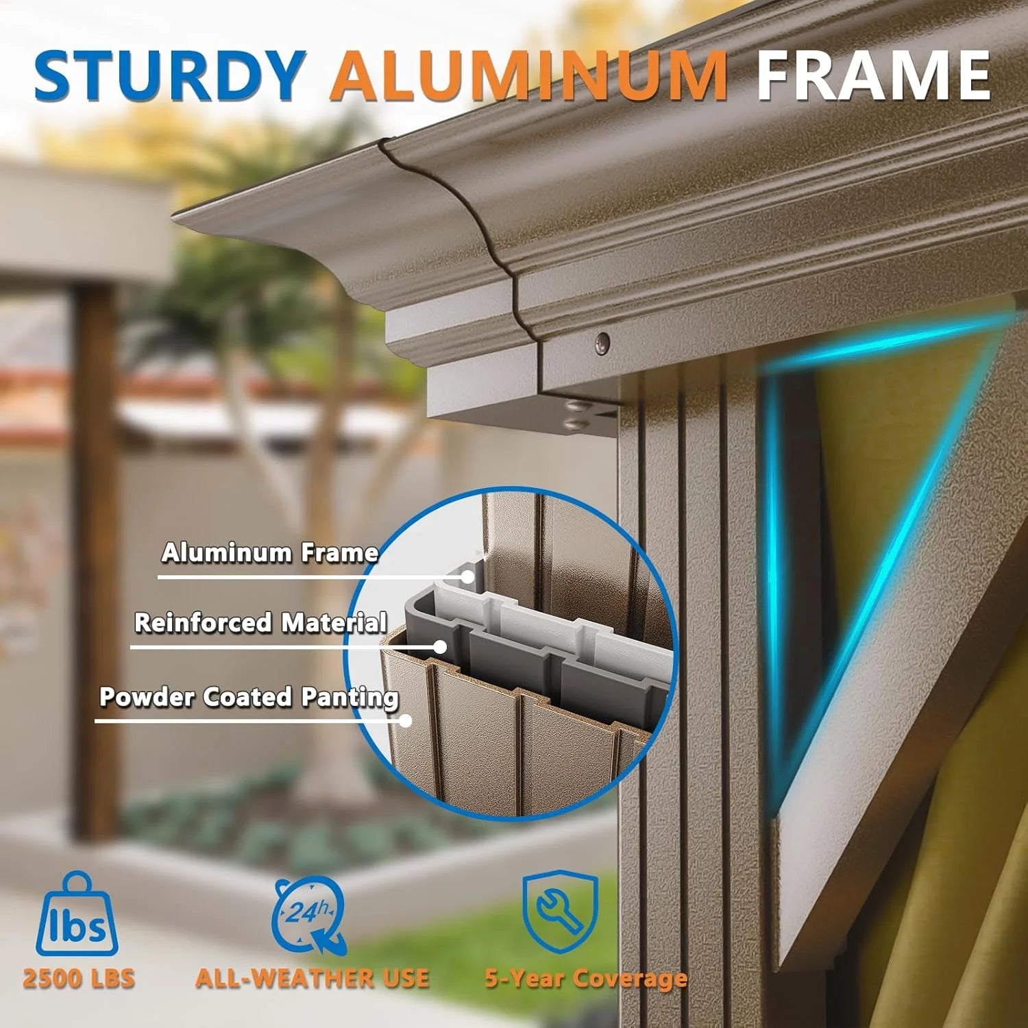 [Durable Materials Built to Last] The galvanized steel rooftop supports up to 18.43 psf of snow load, offering year-round protection. Curtains are made of 160g wrinkle-resistant polyester—durable, easy to clean, and removable in 4 sections for effortless setup and maintenance.