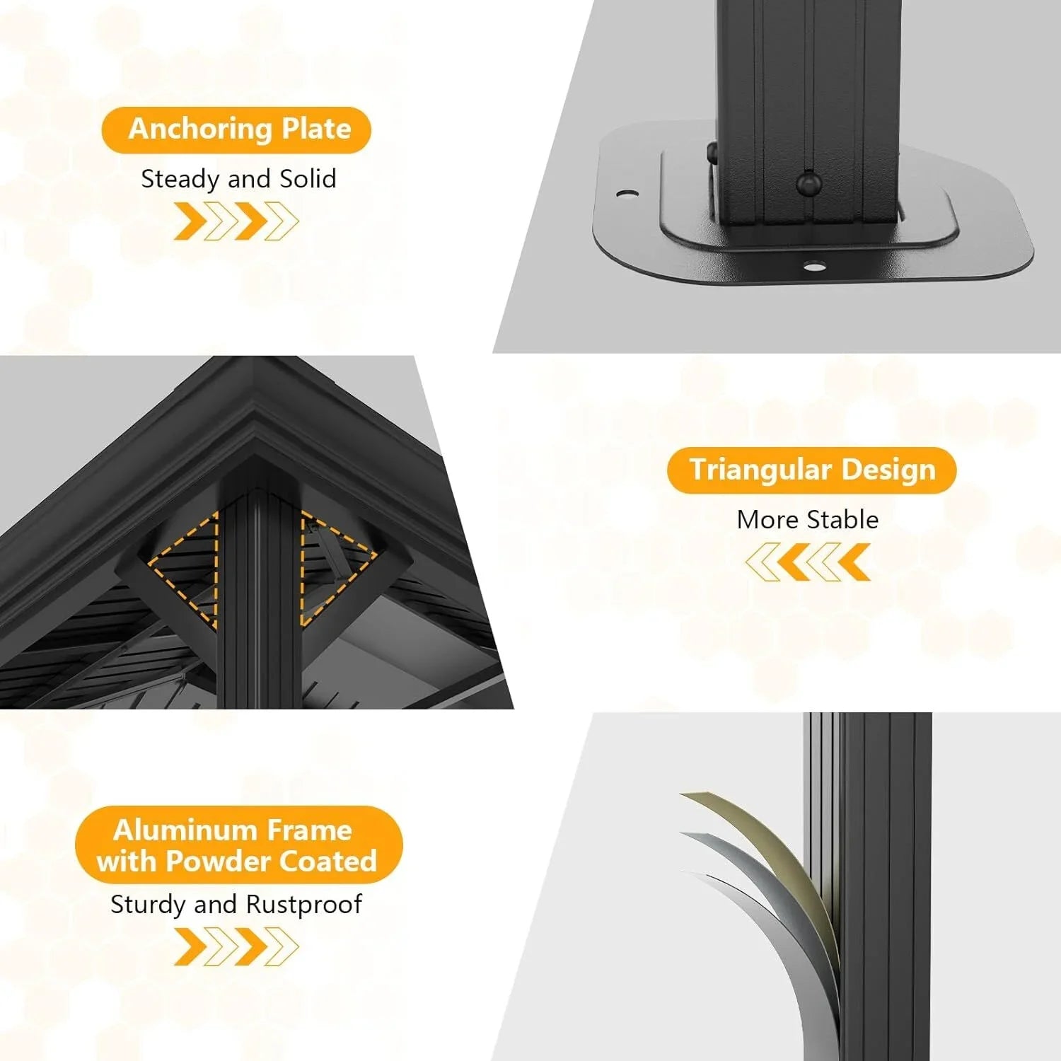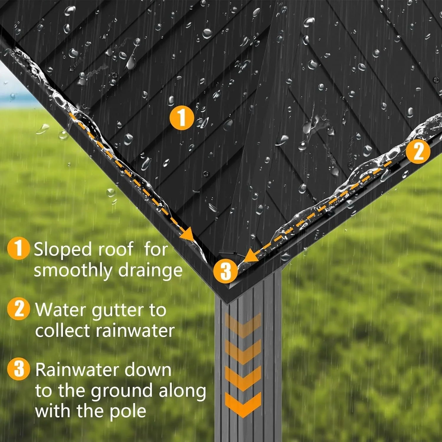 [Double Roof for Ventilation & UV Protection] Designed with a heavy-duty galvanized steel roof, this hardtop gazebo offers superior airflow while blocking harmful UV rays. It reduces heat and wind impact, making it safe for sunbathing without the risk of sunburn—ideal for hot summer days.