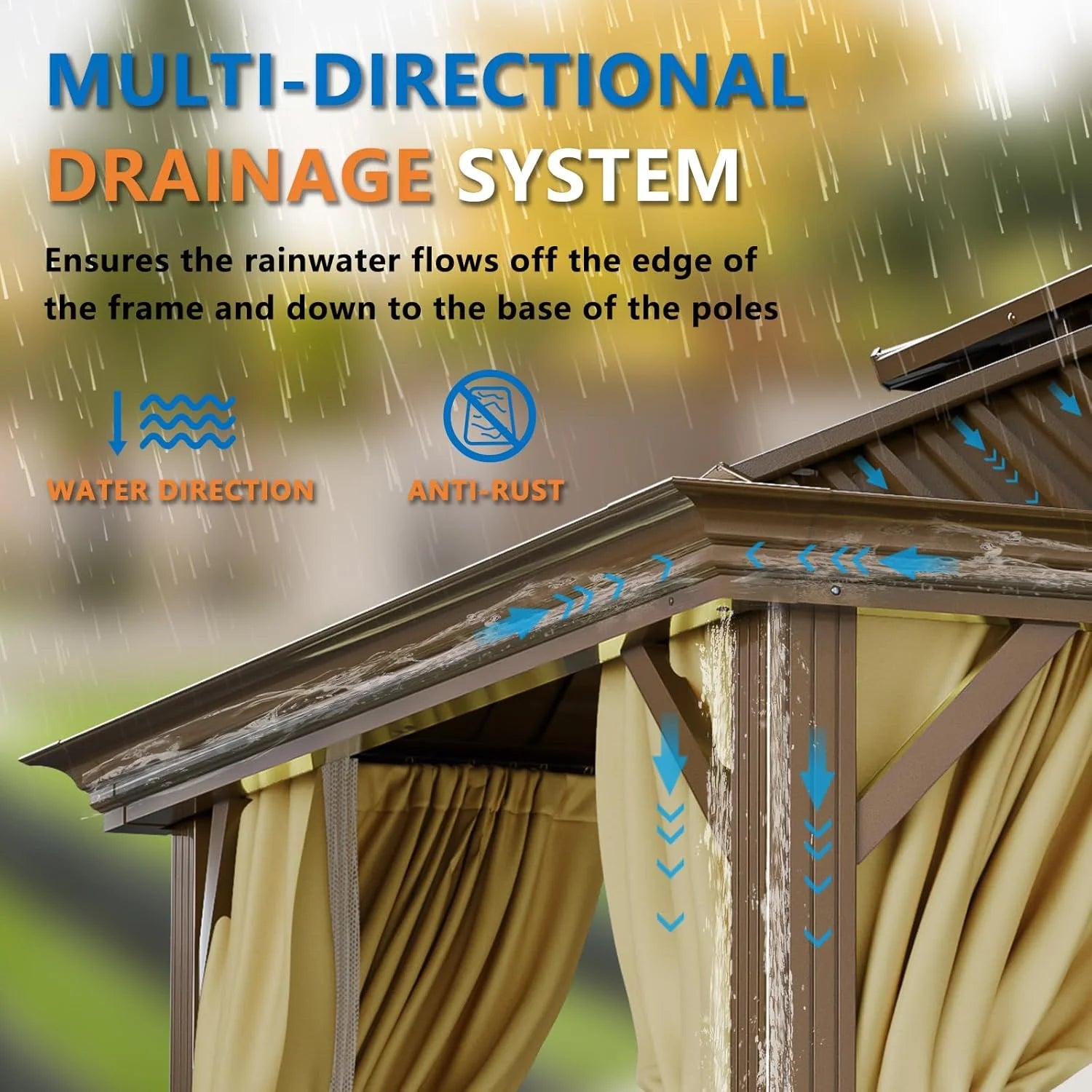 Upgrade your backyard with the COBIZI 12x20ft Hardtop Gazebo, engineered with a double galvanized steel roof for ultimate all-weather durability. Whether it's sunshine, rain, or snow, this permanent structure is built to last—providing reliable shelter year-round.