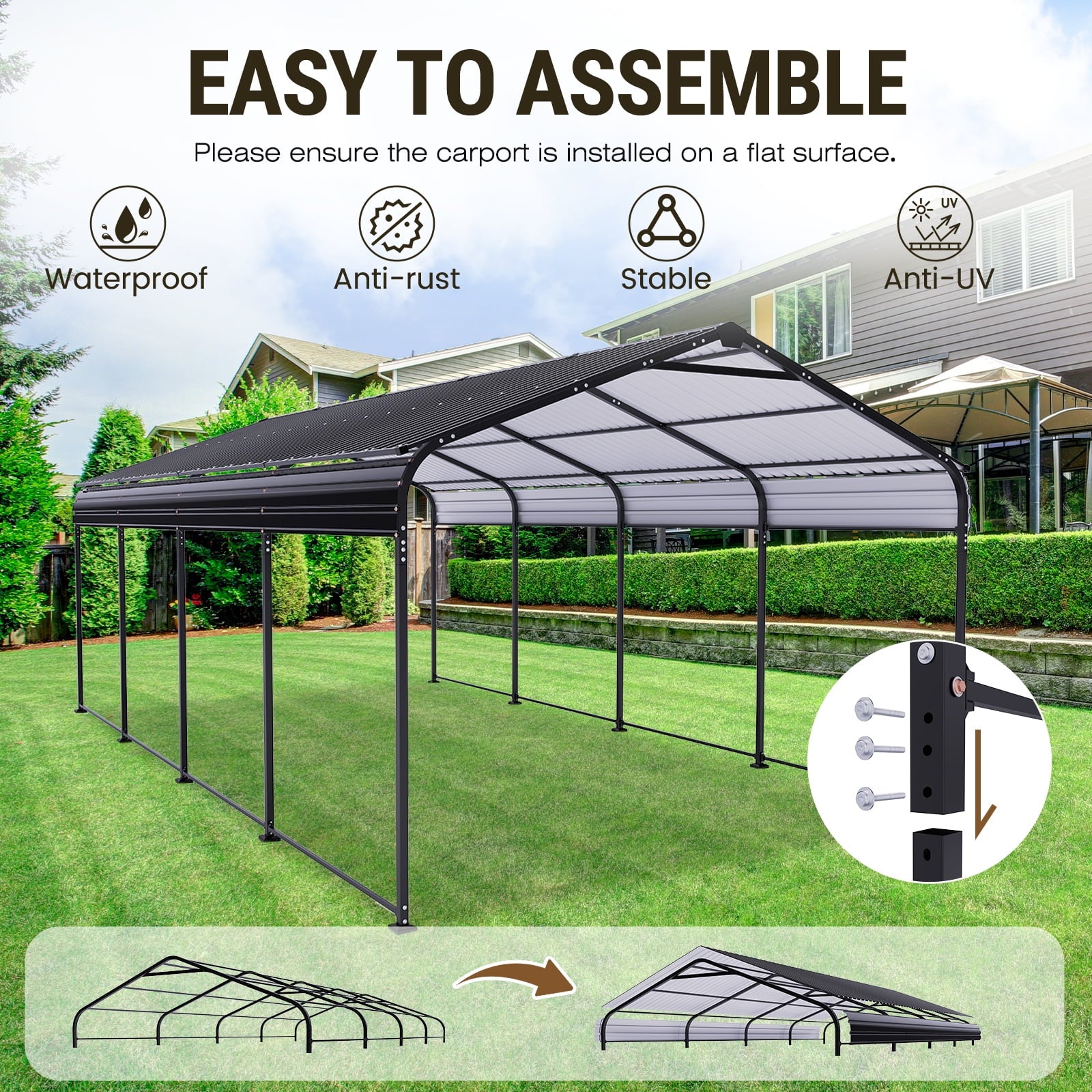 - Easyto assemble-Please ensure the carport is installed on a flat surface.